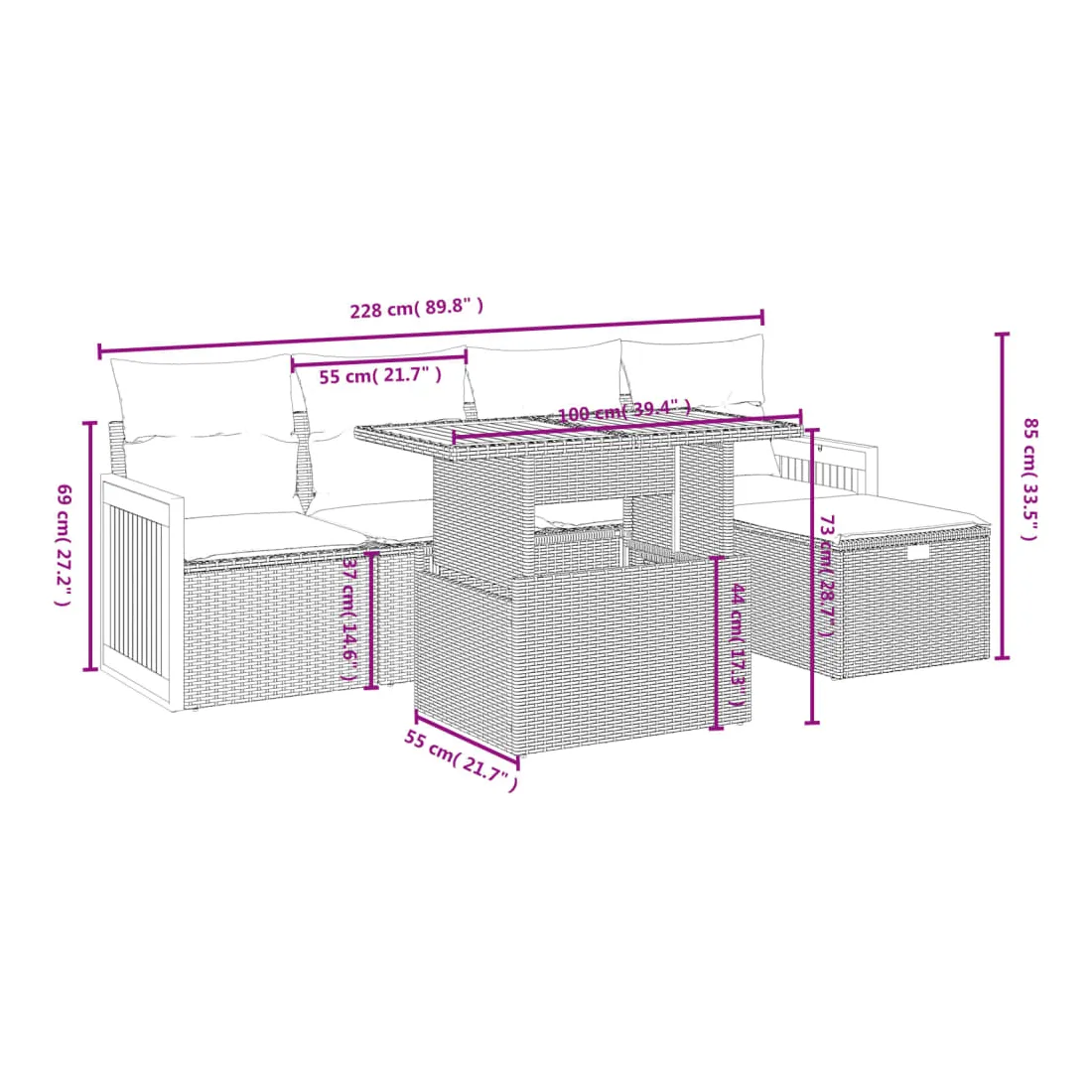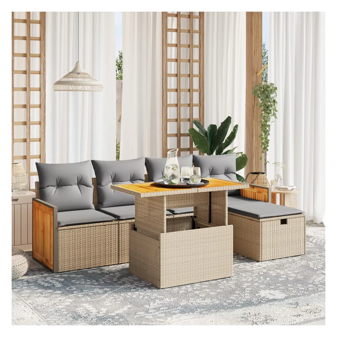 Cet ensemble de canapés de jardin est le complément parfait de votre arrière-cour, terrasse ou patio, offrant un espace confortable et accueillant pour discuter avec la famille et les amis ou simplement se détendre et profiter de l'extérieur. Matériau durable : la résine tressée, également connue sous le nom de poly rotin, est un matériau synthétique solide et nécessitant peu d'entretien qui ressemble au rotin naturel. Il est léger, facile à nettoyer et couramment utilisé pour les meubles d'extérieur en raison de sa durabilité et de ses propriétés de résistance aux intempéries.Dessus de table réglable : le dessus de table peut être soulevé pour rendre la table plus haute, ce qui transforme la table d'extérieur d'une table basse à une table de salle à manger. Elle est parfaite pour recevoir des invités ou prendre des repas à l'extérieur.Housse amovible et lavable : ces coussins de siège sont dotés de housses amovibles pour un lavage et un entretien faciles.Conception modulaire : cet ensemble de meubles d'extérieur a une conception modulaire, ce qui le rend complètement flexible et facile à déplacer, afin que vous puissiez créer un agencement de meubles d'extérieur personnalisé. Bon à savoir :Pour que vos meubles d'extérieur restent beaux, nous vous recommandons de les protéger avec une housse imperméable.