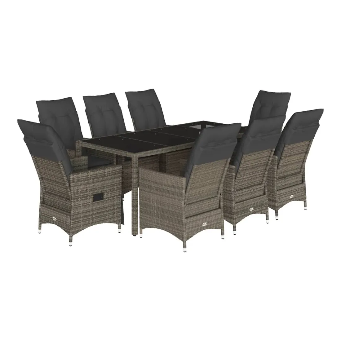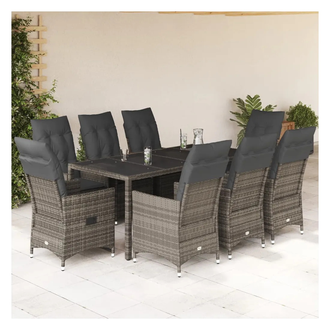 Cet ensemble de salle à manger de jardin est un excellent choix pour les repas en plein air ou simplement pour se détendre dans le jardin, la cour arrière ou sur la terrasse. Matériau durable : le rotin PE, également appelé polyrotin, est un matériau synthétique solide et facile d'entretien qui ressemble au rotin naturel. Il est léger, facile à nettoyer et couramment utilisé pour les meubles d'extérieur en raison de sa durabilité et de sa résistance aux intempéries. Dossier réglable : ce siège de jardin est équipé d'une poignée. Vous pouvez régler le dossier dans n'importe quelle position en tirant sur la poignée, puis le remettre rapidement dans sa position d'origine. Plateau en verre : le plateau de la table d'extérieur est en verre trempé solide et durable, ce qui le rend facile à nettoyer avec un chiffon humide et ajoute une touche d'élégance à votre espace extérieur. Assise confortable : cet ensemble de mobilier d'extérieur, doté de coussins épais et rembourrés, offre une assise confortable. Housse amovible et lavable : ces coussins d'assise sont dotés de housses amovibles pour faciliter le lavage et l'entretien. Les coussins de dossier sont munis d'un rabat à l'arrière pour faciliter leur fixation aux dossiers. Bon à savoir :Pour que votre mobilier d'extérieur reste beau, nous vous recommandons de le protéger avec une housse imperméable.
