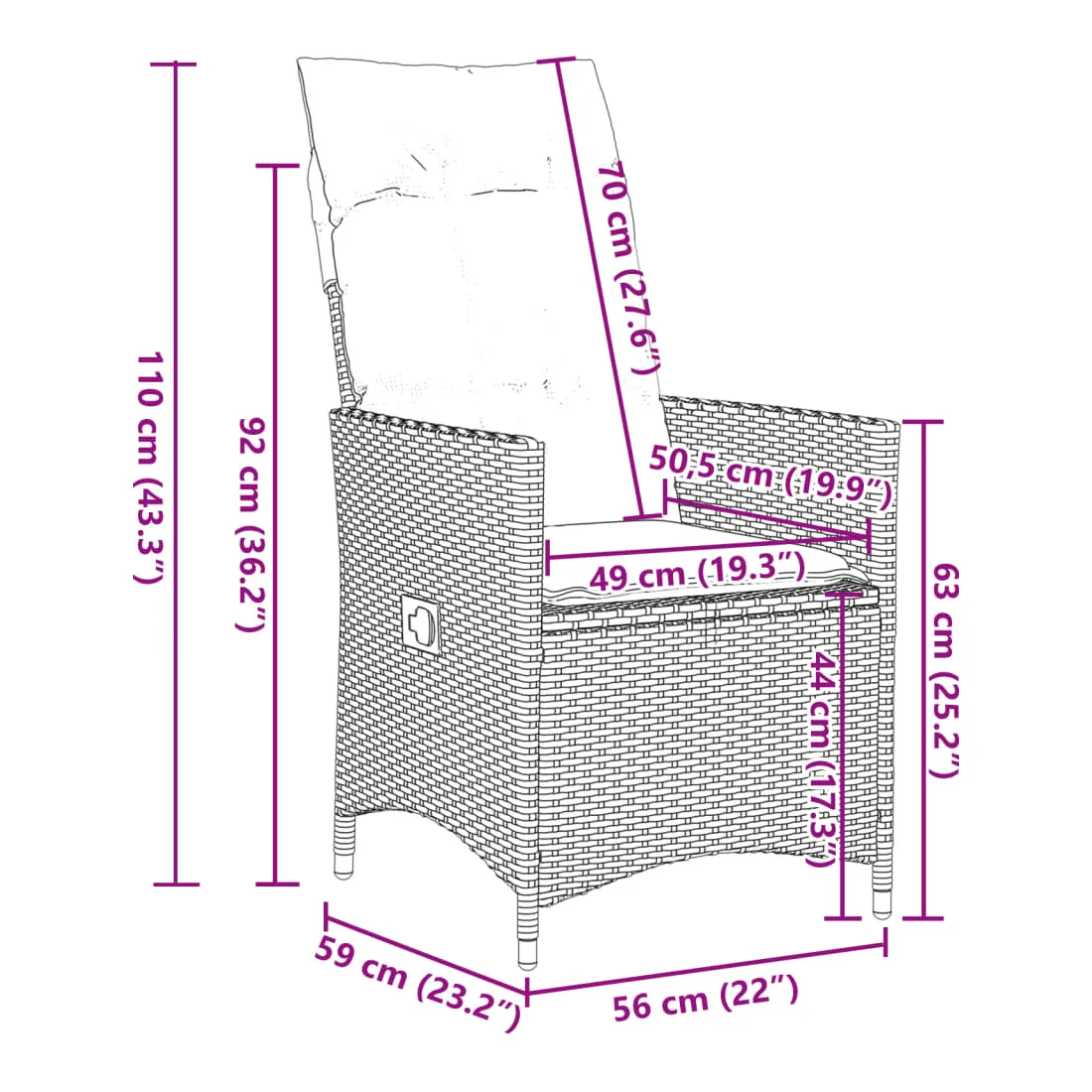 - Dimensions assise : 56 x 59 x 92 cm (l x P x H)
