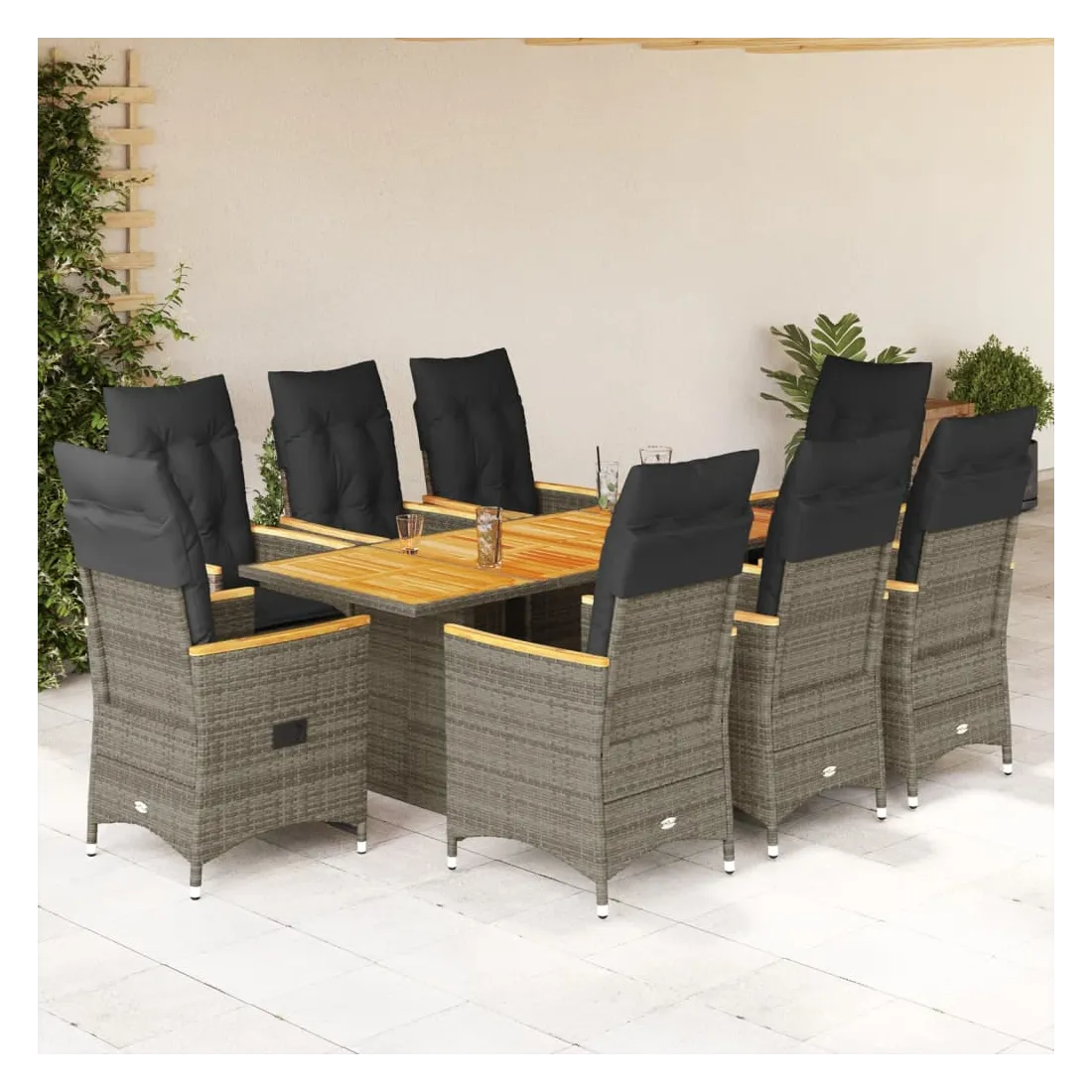 - Matériaux : Rotin PE, acier thermolaqué, bois d'acacia massif finition huilée