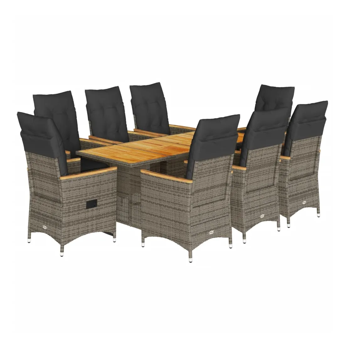 Cet ensemble de salle à manger de jardin est un excellent choix pour les repas en plein air ou simplement pour se détendre dans le jardin, la cour arrière ou sur la terrasse. Matériau durable : le rotin PE, également appelé polyrotin, est un matériau synthétique solide et facile d'entretien qui ressemble au rotin naturel. Il est léger, facile à nettoyer et couramment utilisé pour les meubles d'extérieur en raison de sa durabilité et de sa résistance aux intempéries. Dossier réglable : ce siège de jardin est équipé d'une poignée. Vous pouvez régler le dossier dans n'importe quelle position en tirant sur la poignée, puis le remettre rapidement dans sa position d'origine. Plateau stable et facile à nettoyer : cette table de jardin est dotée d'un plateau en bois d'acacia robuste, durable et facile à nettoyer avec un chiffon humide. Assise confortable : cet ensemble de mobilier d'extérieur, doté de coussins épais et rembourrés, offre une assise confortable. Housse amovible et lavable : ces coussins d'assise sont dotés de housses amovibles pour faciliter le lavage et l'entretien. Les coussins de dossier sont dotés d'un rabat à l'arrière pour faciliter leur fixation aux dossiers. Bon à savoir :Pour que votre mobilier d'extérieur reste beau, nous vous recommandons de le protéger avec une housse imperméable.