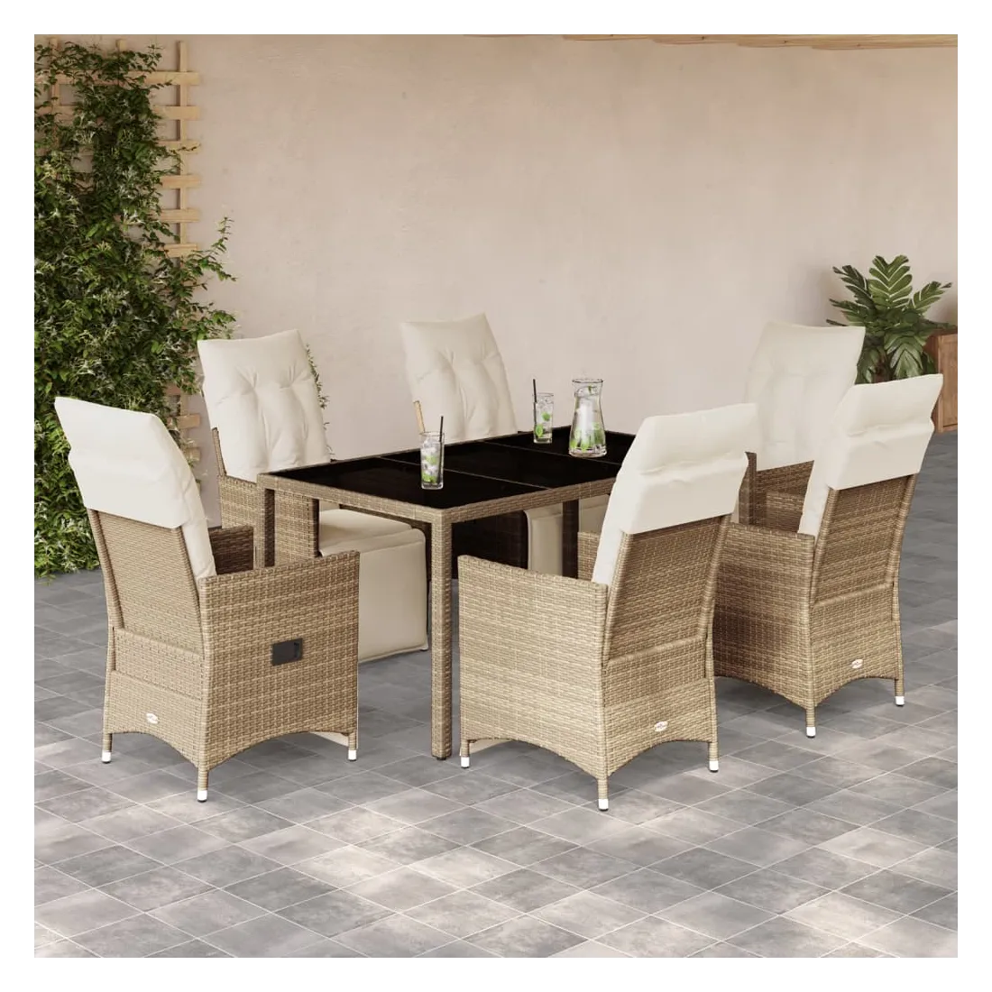 Savourez un café ou discutez avec votre famille et vos amis dans le jardin, l'arrière-cour ou sur le balcon avec cet ensemble de bistro confortable ! Matériau durable : la résine tressée, également connue sous le nom de poly rotin, est un matériau synthétique solide et nécessitant peu d'entretien qui ressemble au rotin naturel. Il est léger, facile à nettoyer et couramment utilisé pour les meubles d'extérieur en raison de sa durabilité et de ses propriétés de résistance aux intempéries.Dossier et repose-pied réglables : ce siège de jardin est doté d'une poignée. Vous pouvez régler le dossier et le repose-pied dans n'importe quelle position en tirant sur la poignée, et le remettre rapidement dans sa position initiale.Expérience d'assise confortable : ce mobilier d'extérieur, doté de coussins épais, offre une expérience d'assise confortable.Housse amovible et lavable : ces coussins de siège sont dotés de housses amovibles pour un lavage et un entretien faciles. Les coussins de dossier ont un rabat à l'arrière pour une fixation facile aux dossiers.Dessus en verre : le dessus de la table d'extérieur est fabriqué en verre trempé solide et durable, ce qui le rend facile à nettoyer avec un chiffon humide et ajoute une touche d'élégance à votre espace extérieur. Bon à savoir :Pour que vos meubles d'extérieur restent beaux, nous vous recommandons de les protéger avec une housse imperméable.