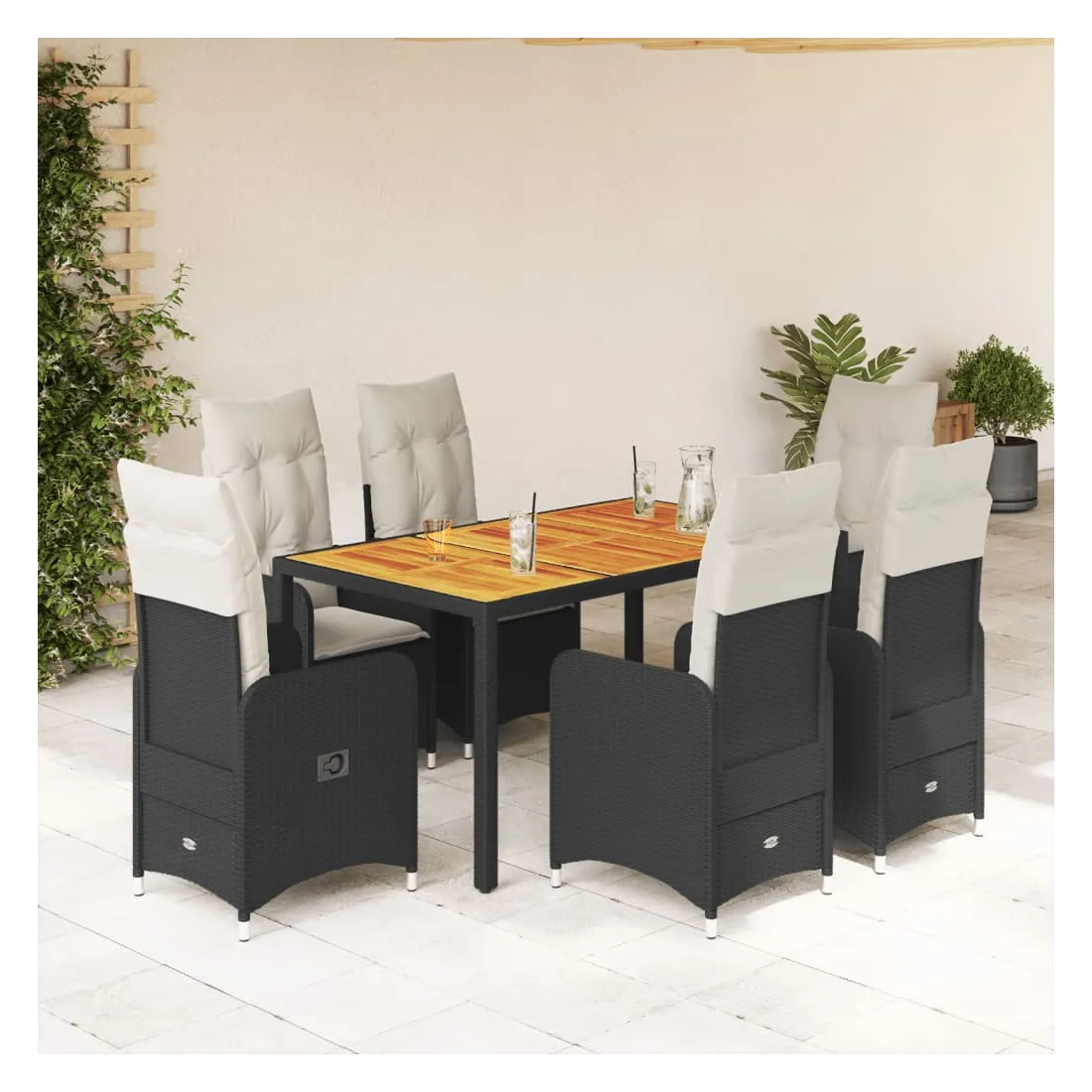Savourez un café ou discutez avec votre famille et vos amis dans le jardin, l'arrière-cour ou sur le balcon avec cet ensemble de bistro confortable ! Matériau durable : la résine tressée, également connue sous le nom de poly rotin, est un matériau synthétique solide et nécessitant peu d'entretien qui ressemble au rotin naturel. Elle est légère, facile à nettoyer et couramment utilisée pour les meubles d'extérieur en raison de sa durabilité et de ses propriétés de résistance aux intempéries.Dossier réglable : ce siège de jardin est doté d'une poignée. Vous pouvez régler le dossier dans n'importe quelle position en tirant sur la poignée et le remettre rapidement dans sa position initiale.Expérience d'assise confortable : ce mobilier d'extérieur, doté de coussins épais, offre une expérience d'assise confortable.Housse amovible et lavable : ces coussins de siège sont dotés de housses amovibles pour un lavage et un entretien faciles. Les coussins de dossier ont un rabat à l'arrière pour une fixation facile aux dossiers.Dessus stable et facile à nettoyer : cette table de jardin a un dessus en bois d'acacia robuste, durable et facile à nettoyer avec un chiffon humide. Bon à savoir :Pour que vos meubles d'extérieur restent beaux, nous vous recommandons de les protéger avec une housse imperméable.