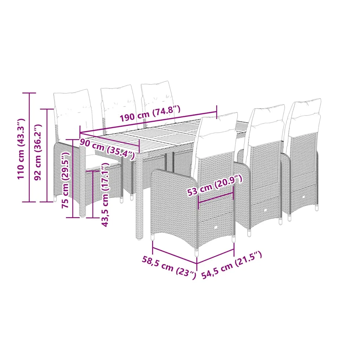 - Dimensions : 190 x 90 x 75 cm (L x l x H)