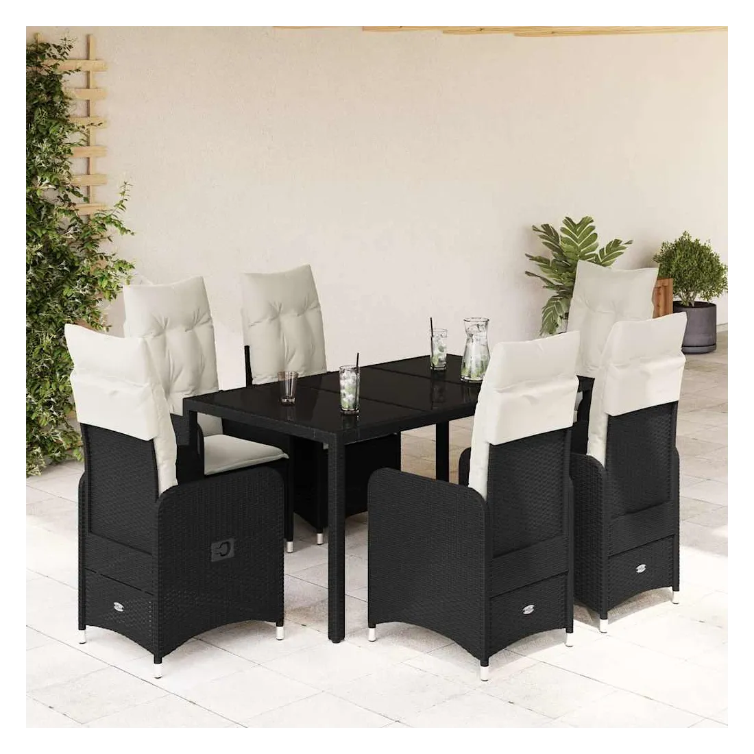 - Matériaux : Rotin PE, acier thermolaqué, verre trempé