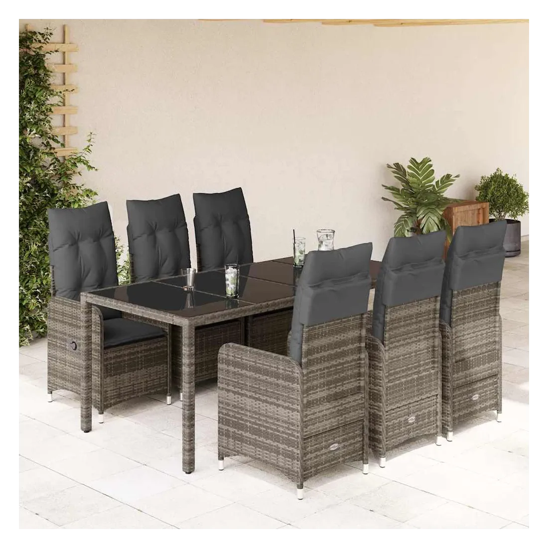 Savourez un café ou discutez avec votre famille et vos amis dans le jardin, l'arrière-cour ou sur le balcon avec cet ensemble de bistro confortable ! Matériau durable : la résine tressée, également connue sous le nom de poly rotin, est un matériau synthétique solide et nécessitant peu d'entretien qui ressemble au rotin naturel. Elle est légère, facile à nettoyer et couramment utilisée pour les meubles d'extérieur en raison de sa durabilité et de ses propriétés de résistance aux intempéries.Dossier réglable : ce siège de jardin est doté d'une poignée. Vous pouvez régler le dossier dans n'importe quelle position en tirant sur la poignée et le remettre rapidement dans sa position initiale.Expérience d'assise confortable : ce mobilier d'extérieur, doté de coussins épais, offre une expérience d'assise confortable.Housse amovible et lavable : ces coussins de siège sont dotés de housses amovibles pour un lavage et un entretien faciles. Les coussins de dossier ont un rabat à l'arrière pour une fixation facile aux dossiers.Dessus en verre : le dessus de la table d'extérieur est fabriqué en verre trempé solide et durable, ce qui le rend facile à nettoyer avec un chiffon humide et ajoute une touche d'élégance à votre espace extérieur. Bon à savoir :Pour que vos meubles d'extérieur restent beaux, nous vous recommandons de les protéger avec une housse imperméable.