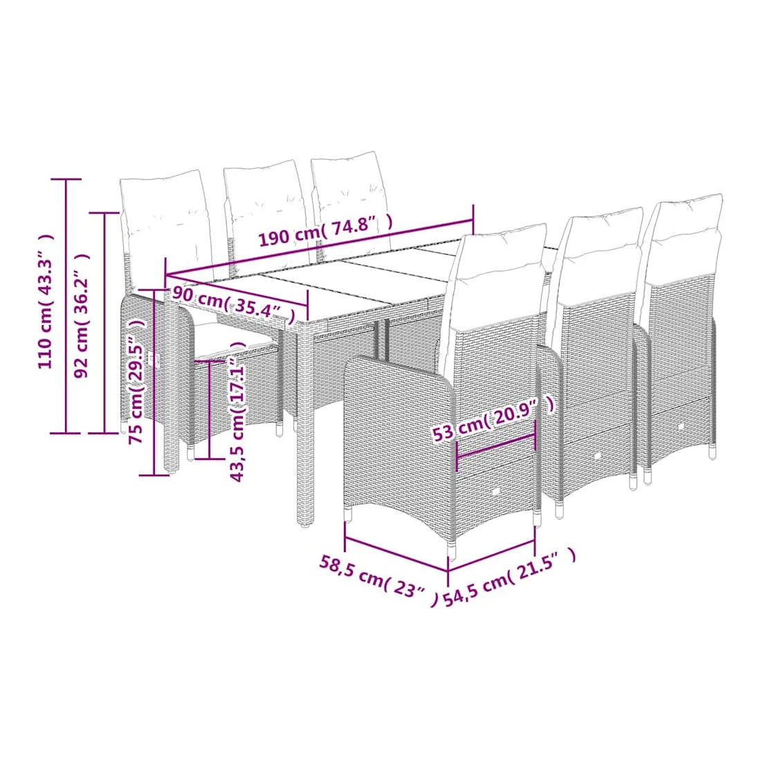 - Dimensions : 190 x 90 x 75 cm (L x l x H)
