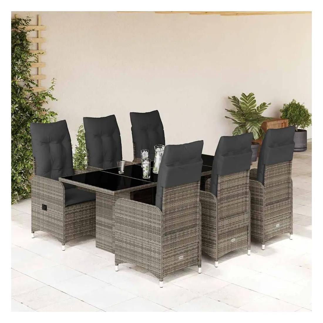 Savourez un café ou discutez avec votre famille et vos amis dans le jardin, l'arrière-cour ou sur le balcon avec cet ensemble de bistro confortable ! Matériau durable : la résine tressée, également connue sous le nom de poly rotin, est un matériau synthétique solide et nécessitant peu d'entretien qui ressemble au rotin naturel. Elle est légère, facile à nettoyer et couramment utilisée pour les meubles d'extérieur en raison de sa durabilité et de ses propriétés de résistance aux intempéries.Dossier réglable : ce siège de jardin est doté d'une poignée. Vous pouvez régler le dossier dans n'importe quelle position en tirant sur la poignée et le remettre rapidement dans sa position initiale.Expérience d'assise confortable : ce mobilier d'extérieur, doté de coussins épais, offre une expérience d'assise confortable.Housse amovible et lavable : ces coussins de siège sont dotés de housses amovibles pour un lavage et un entretien faciles. Les coussins de dossier ont un rabat à l'arrière pour une fixation facile aux dossiers.Dessus en verre : le dessus de la table d'extérieur est fabriqué en verre trempé solide et durable, ce qui le rend facile à nettoyer avec un chiffon humide et ajoute une touche d'élégance à votre espace extérieur. Bon à savoir :Pour que vos meubles d'extérieur restent beaux, nous vous recommandons de les protéger avec une housse imperméable.