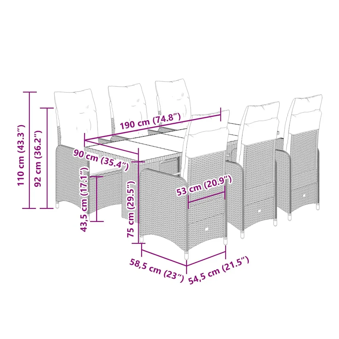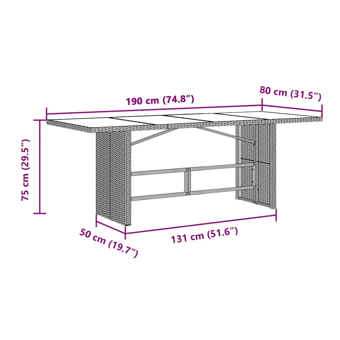- Dimensions : 190 x 80 x 75 cm (L x l x H)