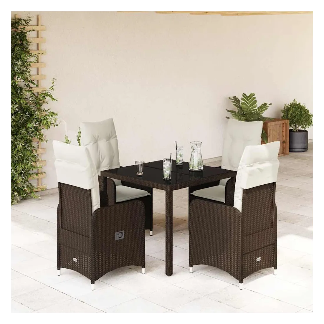 Savourez un café ou discutez avec votre famille et vos amis dans le jardin, l'arrière-cour ou sur le balcon avec cet ensemble de bistro confortable ! Matériau durable : la résine tressée, également connue sous le nom de poly rotin, est un matériau synthétique solide et nécessitant peu d'entretien qui ressemble au rotin naturel. Elle est légère, facile à nettoyer et couramment utilisée pour les meubles d'extérieur en raison de sa durabilité et de ses propriétés de résistance aux intempéries.Dossier réglable : ce siège de jardin est doté d'une poignée. Vous pouvez régler le dossier dans n'importe quelle position en tirant sur la poignée et le remettre rapidement dans sa position initiale.Expérience d'assise confortable : ce mobilier d'extérieur, doté de coussins épais, offre une expérience d'assise confortable.Housse amovible et lavable : ces coussins de siège sont dotés de housses amovibles pour un lavage et un entretien faciles. Les coussins de dossier ont un rabat à l'arrière pour une fixation facile aux dossiers.Dessus en verre : le dessus de la table d'extérieur est fabriqué en verre trempé solide et durable, ce qui le rend facile à nettoyer avec un chiffon humide et ajoute une touche d'élégance à votre espace extérieur. Bon à savoir :Pour que vos meubles d'extérieur restent beaux, nous vous recommandons de les protéger avec une housse imperméable.