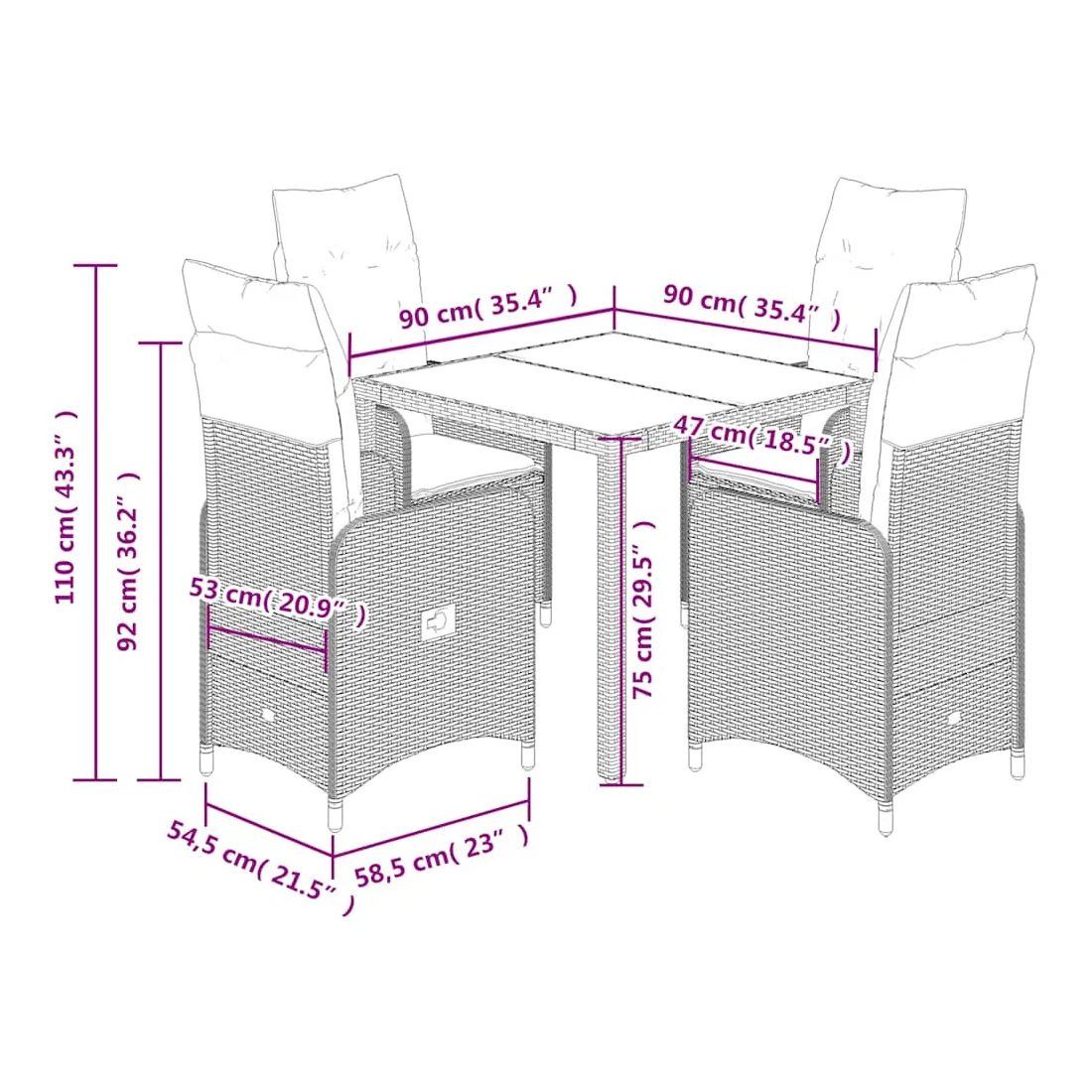 - Dimensions : 90 x 90 x 75 cm (L x l x H)