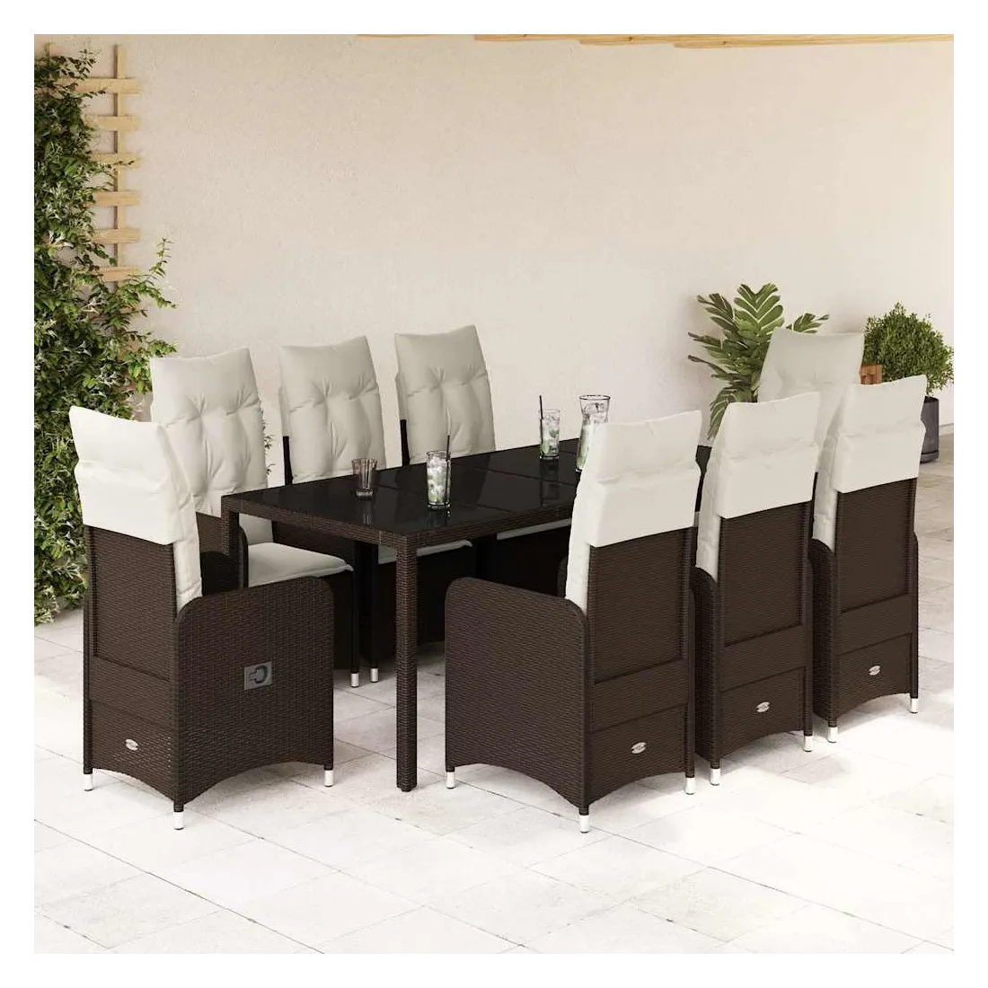 Savourez un café ou discutez avec votre famille et vos amis dans le jardin, l'arrière-cour ou sur le balcon avec cet ensemble de bistro confortable ! Matériau durable : la résine tressée, également connue sous le nom de poly rotin, est un matériau synthétique solide et nécessitant peu d'entretien qui ressemble au rotin naturel. Elle est légère, facile à nettoyer et couramment utilisée pour les meubles d'extérieur en raison de sa durabilité et de ses propriétés de résistance aux intempéries.Dossier réglable : ce siège de jardin est doté d'une poignée. Vous pouvez régler le dossier dans n'importe quelle position en tirant sur la poignée et le remettre rapidement dans sa position initiale.Expérience d'assise confortable : ce mobilier d'extérieur, doté de coussins épais, offre une expérience d'assise confortable.Housse amovible et lavable : ces coussins de siège sont dotés de housses amovibles pour un lavage et un entretien faciles. Les coussins de dossier ont un rabat à l'arrière pour une fixation facile aux dossiers.Dessus en verre : le dessus de la table d'extérieur est fabriqué en verre trempé solide et durable, ce qui le rend facile à nettoyer avec un chiffon humide et ajoute une touche d'élégance à votre espace extérieur. Bon à savoir :Pour que vos meubles d'extérieur restent beaux, nous vous recommandons de les protéger avec une housse imperméable.