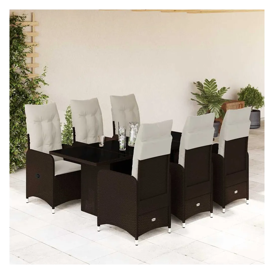 Savourez un café ou discutez avec votre famille et vos amis dans le jardin, l'arrière-cour ou sur le balcon avec cet ensemble de bistro confortable ! Matériau durable : la résine tressée, également connue sous le nom de poly rotin, est un matériau synthétique solide et nécessitant peu d'entretien qui ressemble au rotin naturel. Elle est légère, facile à nettoyer et couramment utilisée pour les meubles d'extérieur en raison de sa durabilité et de ses propriétés de résistance aux intempéries.Dossier réglable : ce siège de jardin est doté d'une poignée. Vous pouvez régler le dossier dans n'importe quelle position en tirant sur la poignée et le remettre rapidement dans sa position initiale.Expérience d'assise confortable : ce mobilier d'extérieur, doté de coussins épais, offre une expérience d'assise confortable.Housse amovible et lavable : ces coussins de siège sont dotés de housses amovibles pour un lavage et un entretien faciles. Les coussins de dossier ont un rabat à l'arrière pour une fixation facile aux dossiers.Dessus en verre : le dessus de la table d'extérieur est fabriqué en verre trempé solide et durable, ce qui le rend facile à nettoyer avec un chiffon humide et ajoute une touche d'élégance à votre espace extérieur. Bon à savoir :Pour que vos meubles d'extérieur restent beaux, nous vous recommandons de les protéger avec une housse imperméable.