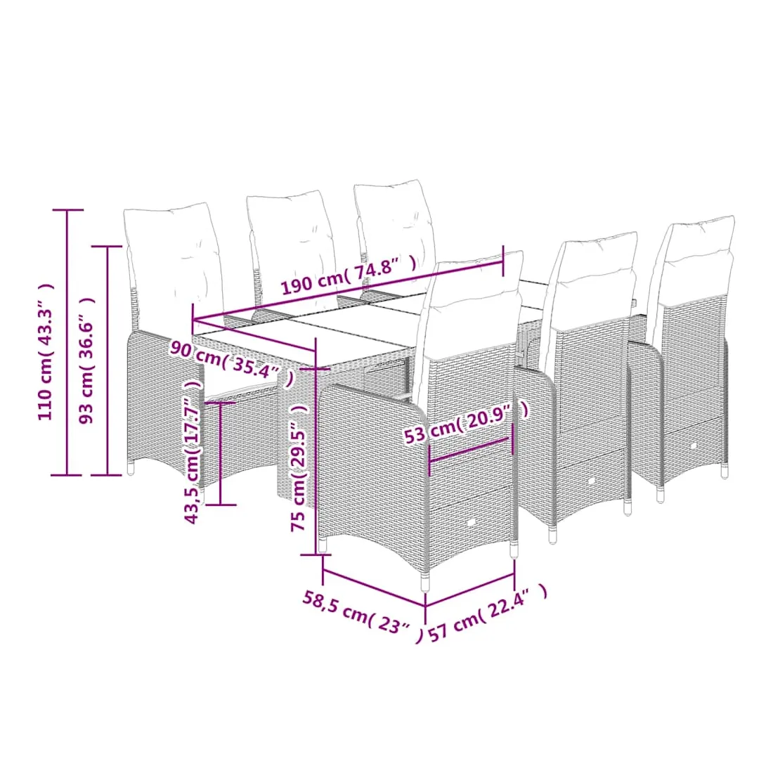 - Dimensions : 190 x 80 x 75 cm (L x l x H)