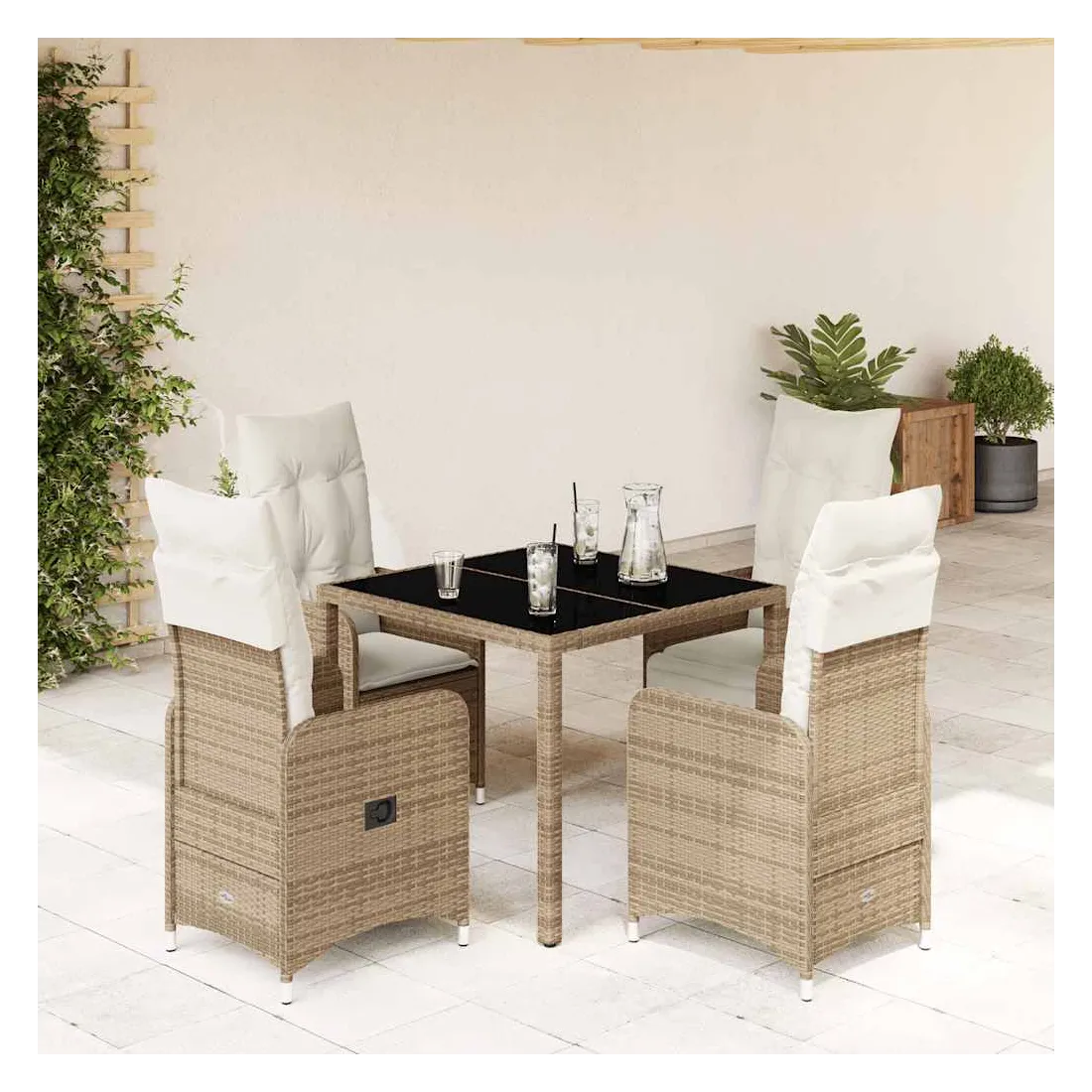 - Matériaux : Rotin PE, acier thermolaqué, verre trempé