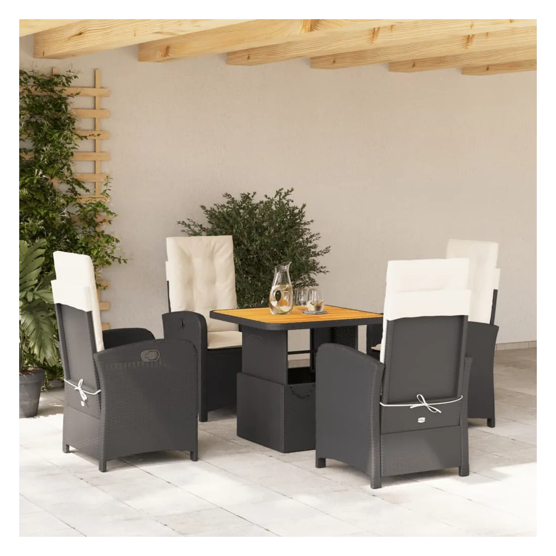 - Matériau : résine tressée, acier enduit de poudre, bois d'acacia massif avec finition à l'huile