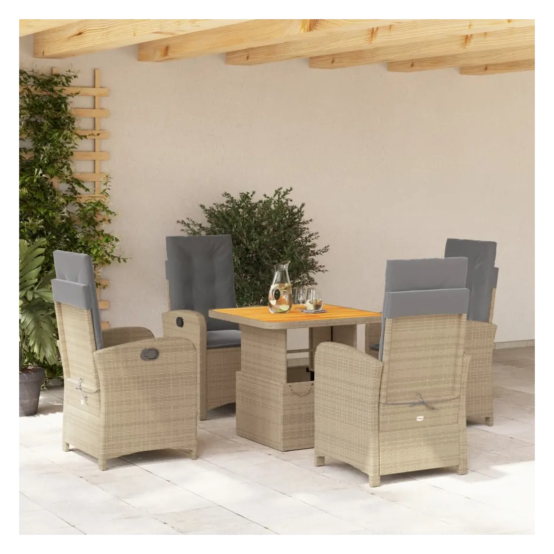 Cet ensemble de salle à manger de jardin est un excellent choix pour les repas en plein air ou pour vous détendre dans le jardin, dans l'arrière-cour ou sur la terrasse. Matériau durable : la résine tressée, également connue sous le nom de poly rotin, est un matériau synthétique solide et nécessitant peu d'entretien qui ressemble au rotin naturel. Il est léger, facile à nettoyer et couramment utilisé pour les meubles d'extérieur en raison de sa durabilité et de ses propriétés de résistance aux intempéries.Dossier réglable : ce siège de jardin est doté d'une poignée. Vous pouvez régler le dossier dans n'importe quelle position en tirant sur la poignée et le remettre rapidement dans sa position initiale.Dessus de table réglable : le dessus de table peut être soulevé pour rendre la table plus haute, ce qui transforme la table d'extérieur d'une table basse à une table de salle à manger. Elle est parfaite pour recevoir des invités ou prendre des repas à l'extérieur.Housse amovible et lavable : ces coussins de siège sont dotés de housses amovibles pour un lavage et un entretien faciles. Les coussins de dossier ont un rabat à l'arrière pour une fixation facile aux dossiers.Expérience d'assise confortable : ce mobilier d'extérieur, doté de coussins épais, offre une expérience d'assise confortable. Bon à savoir :Pour que vos meubles d'extérieur restent beaux, nous vous recommandons de les protéger avec une housse imperméable.
