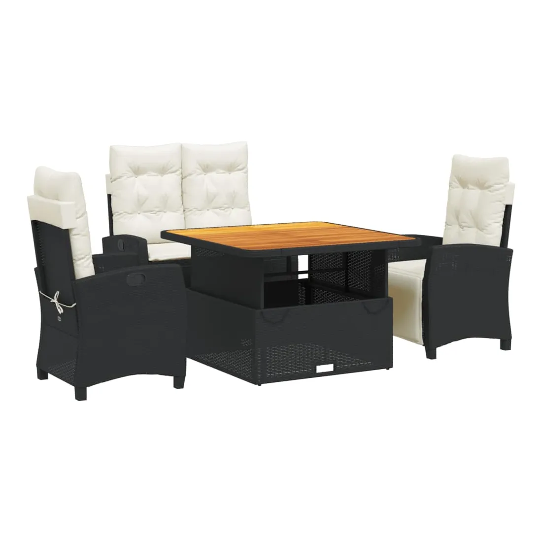 Cet ensemble de salle à manger de jardin est un excellent choix pour les repas en plein air ou simplement pour se détendre dans le jardin, la cour arrière ou sur la terrasse. Matériau durable : le rotin PE, également connu sous le nom de polyrotin, est un matériau synthétique solide et facile d'entretien qui ressemble au rotin naturel. Il est léger, facile à nettoyer et couramment utilisé pour les meubles d'extérieur en raison de sa durabilité et de ses propriétés de résistance aux intempéries. Dossier réglable : ce siège de jardin est équipé d'une poignée. Vous pouvez régler le dossier dans n'importe quelle position en tirant sur la poignée, puis le remettre rapidement dans sa position d'origine. Plateau réglable : le plateau peut être relevé pour rehausser la table, ce qui transforme la table d'extérieur en table basse ou en table à manger. Elle est parfaite pour recevoir des invités ou prendre des repas à l'extérieur. Housse amovible et lavable : ces coussins d'assise sont dotés de housses amovibles pour faciliter le lavage et l'entretien. Les coussins de dossier sont munis d'un rabat à l'arrière pour faciliter leur fixation aux dossiers. Assise confortable : Ce mobilier d'extérieur, doté de coussins épais et rembourrés, offre une assise confortable. Bon à savoir :Pour que votre mobilier d'extérieur reste beau, nous vous recommandons de le protéger avec une housse imperméable.