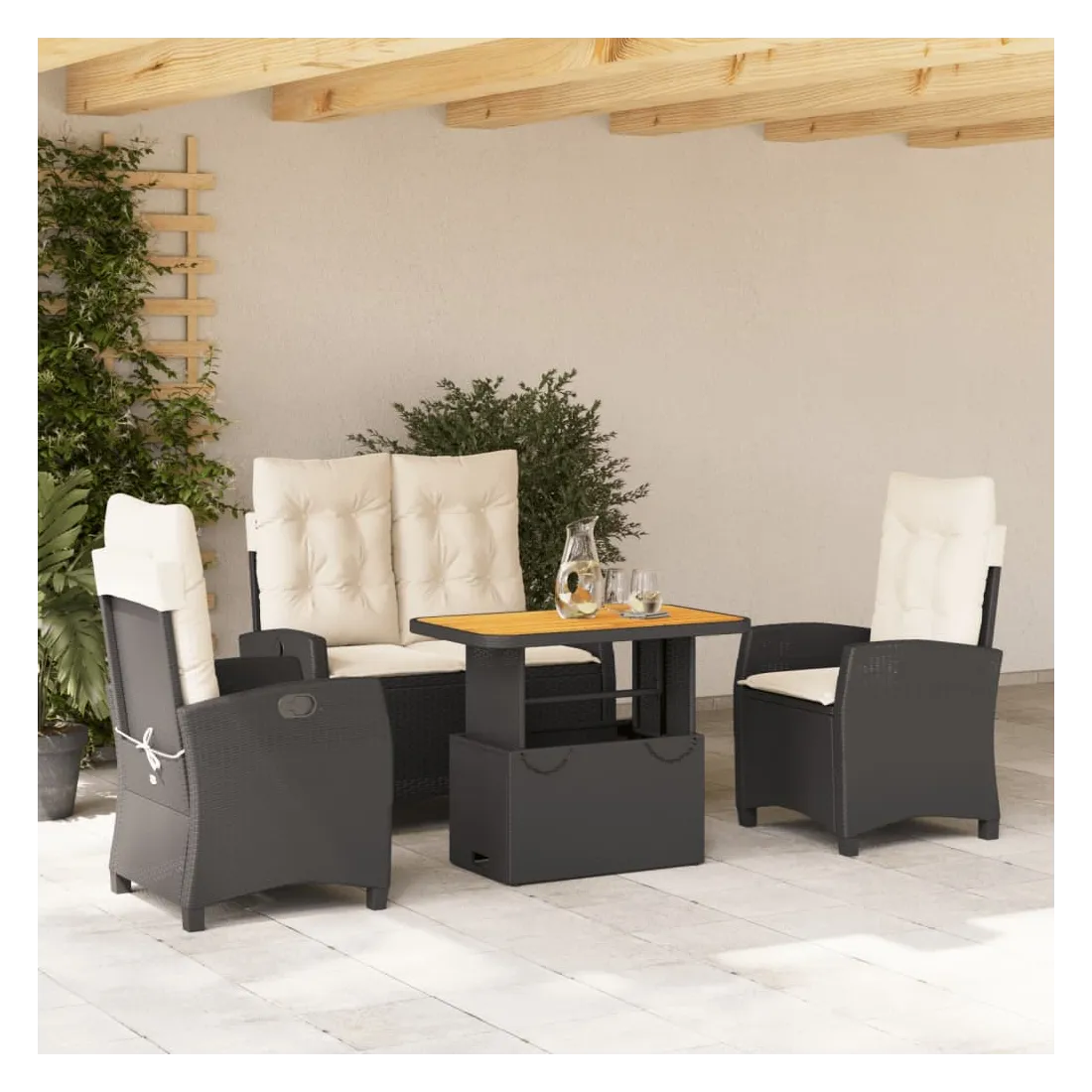 Cet ensemble de salle à manger de jardin est un excellent choix pour les repas en plein air ou pour vous détendre dans le jardin, dans l'arrière-cour ou sur la terrasse. Matériau durable : la résine tressée, également connue sous le nom de poly rotin, est un matériau synthétique solide et nécessitant peu d'entretien qui ressemble au rotin naturel. Il est léger, facile à nettoyer et couramment utilisé pour les meubles d'extérieur en raison de sa durabilité et de ses propriétés de résistance aux intempéries.Dossier réglable : ce siège de jardin est doté d'une poignée. Vous pouvez régler le dossier dans n'importe quelle position en tirant sur la poignée et le remettre rapidement dans sa position initiale.Dessus de table réglable : le dessus de table peut être soulevé pour rendre la table plus haute, ce qui transforme la table d'extérieur d'une table basse à une table de salle à manger. Elle est parfaite pour recevoir des invités ou prendre des repas à l'extérieur.Housse amovible et lavable : ces coussins de siège sont dotés de housses amovibles pour un lavage et un entretien faciles. Les coussins de dossier ont un rabat à l'arrière pour une fixation facile aux dossiers.Expérience d'assise confortable : ce mobilier d'extérieur, doté de coussins épais, offre une expérience d'assise confortable. Bon à savoir :Pour que vos meubles d'extérieur restent beaux, nous vous recommandons de les protéger avec une housse imperméable.