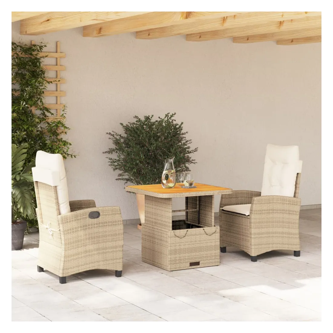 Cet ensemble de salle à manger de jardin est un excellent choix pour les repas en plein air ou pour vous détendre dans le jardin, dans l'arrière-cour ou sur la terrasse. Matériau durable : la résine tressée, également connue sous le nom de poly rotin, est un matériau synthétique solide et nécessitant peu d'entretien qui ressemble au rotin naturel. Il est léger, facile à nettoyer et couramment utilisé pour les meubles d'extérieur en raison de sa durabilité et de ses propriétés de résistance aux intempéries.Dossier réglable : ce siège de jardin est doté d'une poignée. Vous pouvez régler le dossier dans n'importe quelle position en tirant sur la poignée et le remettre rapidement dans sa position initiale.Dessus de table réglable : le dessus de table peut être soulevé pour rendre la table plus haute, ce qui transforme la table d'extérieur d'une table basse à une table de salle à manger. Elle est parfaite pour recevoir des invités ou prendre des repas à l'extérieur.Housse amovible et lavable : ces coussins de siège sont dotés de housses amovibles pour un lavage et un entretien faciles. Les coussins de dossier ont un rabat à l'arrière pour une fixation facile aux dossiers.Expérience d'assise confortable : ce mobilier d'extérieur, doté de coussins épais, offre une expérience d'assise confortable. Bon à savoir :Pour que vos meubles d'extérieur restent beaux, nous vous recommandons de les protéger avec une housse imperméable.