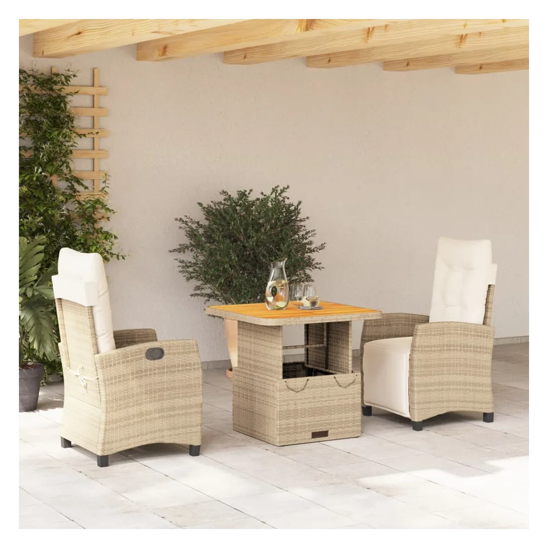 - Matériau : résine tressée, acier enduit de poudre, bois d'acacia massif avec finition à l'huile