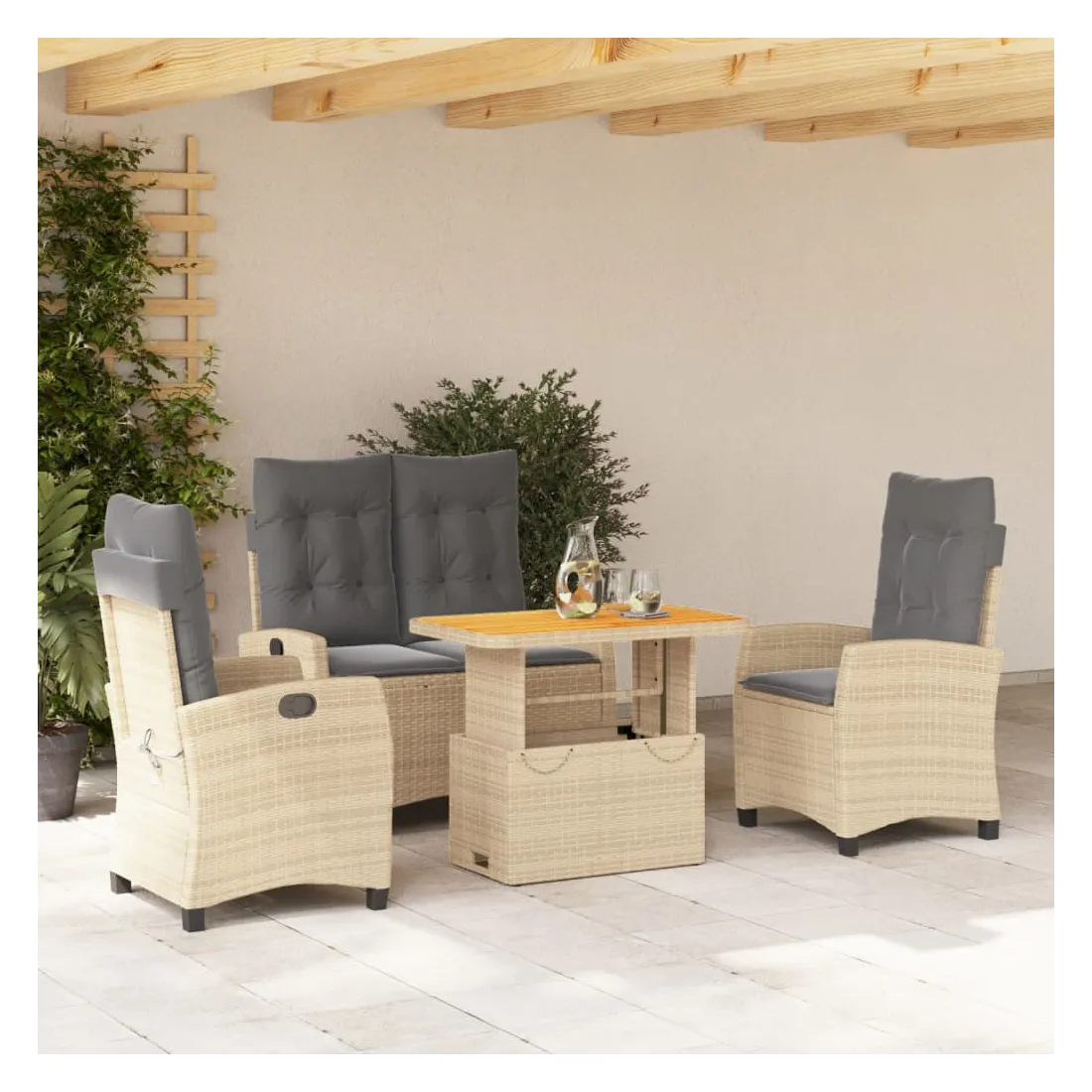 Cet ensemble de salle à manger de jardin est un excellent choix pour les repas en plein air ou pour vous détendre dans le jardin, dans l'arrière-cour ou sur la terrasse. Matériau durable : la résine tressée, également connue sous le nom de poly rotin, est un matériau synthétique solide et nécessitant peu d'entretien qui ressemble au rotin naturel. Il est léger, facile à nettoyer et couramment utilisé pour les meubles d'extérieur en raison de sa durabilité et de ses propriétés de résistance aux intempéries.Dossier réglable : ce siège de jardin est doté d'une poignée. Vous pouvez régler le dossier dans n'importe quelle position en tirant sur la poignée et le remettre rapidement dans sa position initiale.Dessus de table réglable : le dessus de table peut être soulevé pour rendre la table plus haute, ce qui transforme la table d'extérieur d'une table basse à une table de salle à manger. Elle est parfaite pour recevoir des invités ou prendre des repas à l'extérieur.Housse amovible et lavable : ces coussins de siège sont dotés de housses amovibles pour un lavage et un entretien faciles. Les coussins de dossier ont un rabat à l'arrière pour une fixation facile aux dossiers.Expérience d'assise confortable : ce mobilier d'extérieur, doté de coussins épais, offre une expérience d'assise confortable. Bon à savoir :Pour que vos meubles d'extérieur restent beaux, nous vous recommandons de les protéger avec une housse imperméable.
