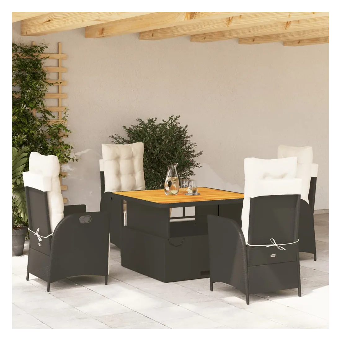 - Matériau : résine tressée, acier enduit de poudre, bois d'acacia massif avec finition à l'huile