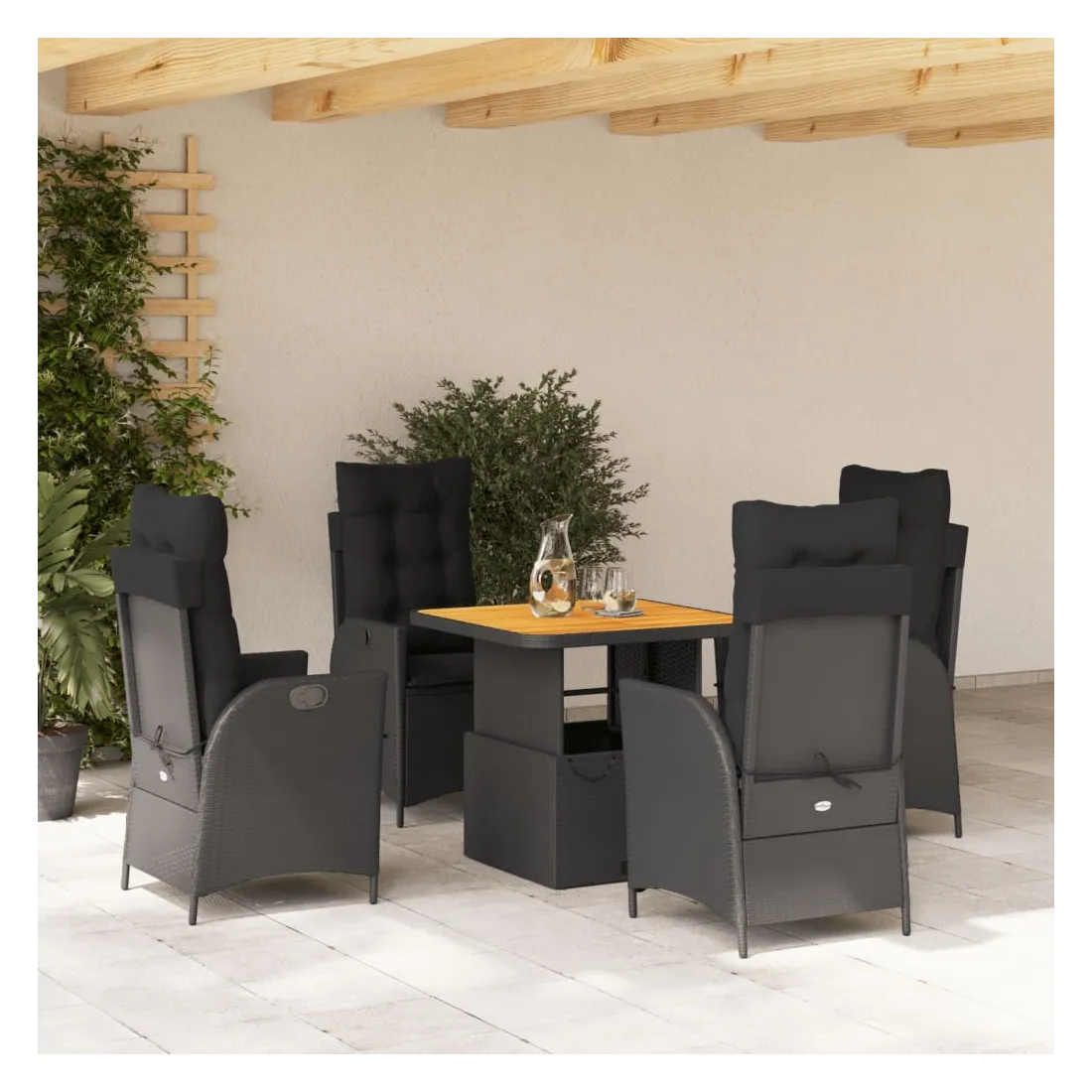 - Matériau : résine tressée, acier enduit de poudre, bois d'acacia massif avec finition à l'huile