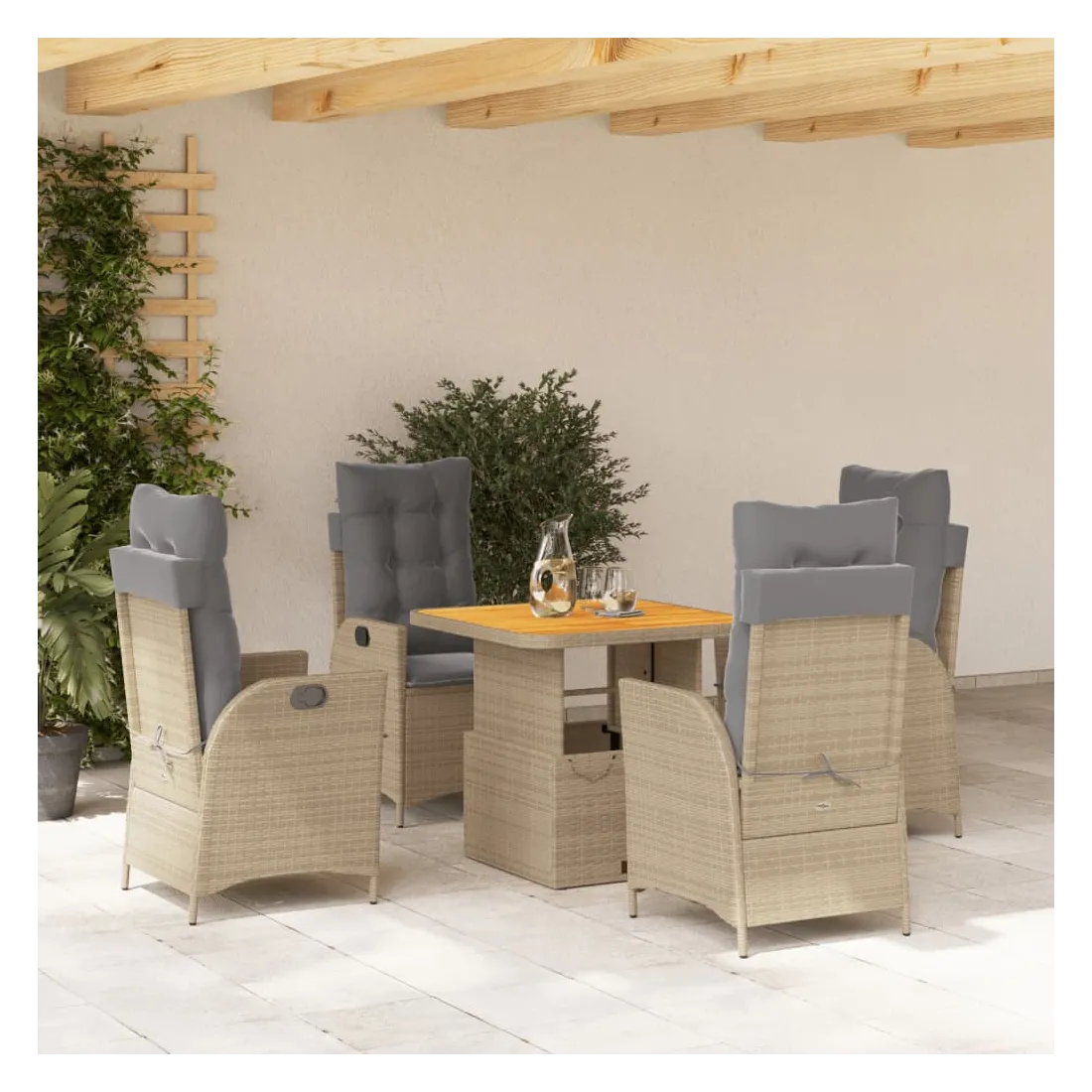 Cet ensemble de salle à manger de jardin est un excellent choix pour les repas en plein air ou pour vous détendre dans le jardin, dans l'arrière-cour ou sur la terrasse. Matériau durable : la résine tressée, également connue sous le nom de poly rotin, est un matériau synthétique solide et nécessitant peu d'entretien qui ressemble au rotin naturel. Il est léger, facile à nettoyer et couramment utilisé pour les meubles d'extérieur en raison de sa durabilité et de ses propriétés de résistance aux intempéries.Dossier réglable : ce siège de jardin est doté d'une poignée. Vous pouvez régler le dossier dans n'importe quelle position en tirant sur la poignée et le remettre rapidement dans sa position initiale.Dessus de table réglable : le dessus de table peut être soulevé pour rendre la table plus haute, ce qui transforme la table d'extérieur d'une table basse à une table de salle à manger. Elle est parfaite pour recevoir des invités ou prendre des repas à l'extérieur.Housse amovible et lavable : ces coussins de siège sont dotés de housses amovibles pour un lavage et un entretien faciles. Les coussins de dossier ont un rabat à l'arrière pour une fixation facile aux dossiers.Expérience d'assise confortable : ce mobilier d'extérieur, doté de coussins épais, offre une expérience d'assise confortable. Bon à savoir :Pour que vos meubles d'extérieur restent beaux, nous vous recommandons de les protéger avec une housse imperméable.