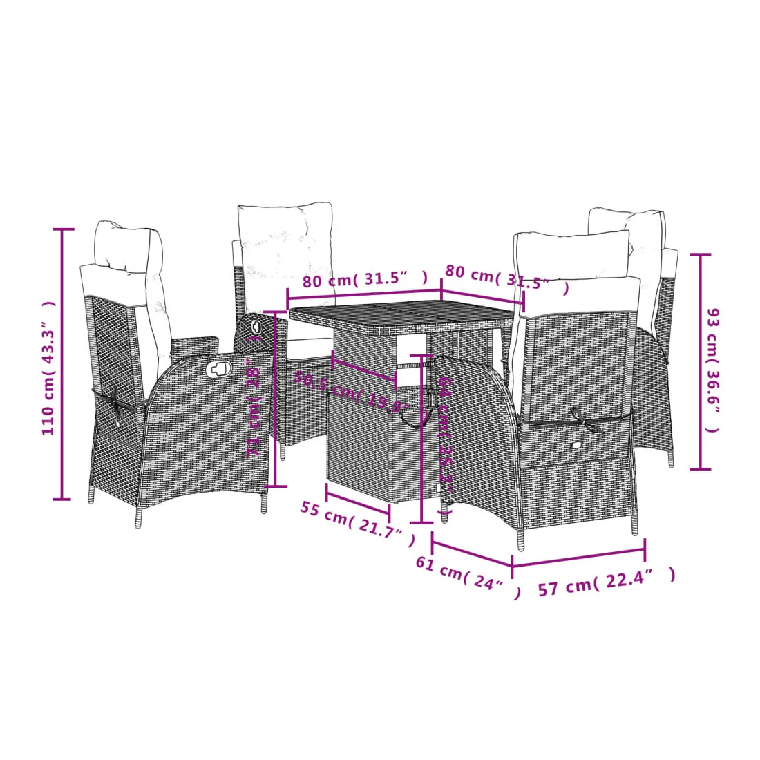 - Dimensions de la table : 80 x 80 x 40/71 cm (L x l x H)