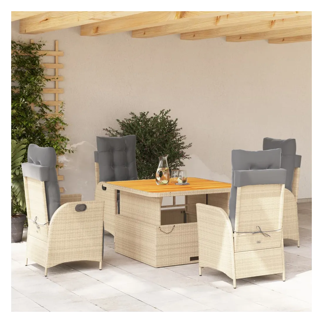 Cet ensemble de salle à manger de jardin est un excellent choix pour les repas en plein air ou pour vous détendre dans le jardin, dans l'arrière-cour ou sur la terrasse. Matériau durable : la résine tressée, également connue sous le nom de poly rotin, est un matériau synthétique solide et nécessitant peu d'entretien qui ressemble au rotin naturel. Il est léger, facile à nettoyer et couramment utilisé pour les meubles d'extérieur en raison de sa durabilité et de ses propriétés de résistance aux intempéries.Dossier réglable : ce siège de jardin est doté d'une poignée. Vous pouvez régler le dossier dans n'importe quelle position en tirant sur la poignée et le remettre rapidement dans sa position initiale.Dessus de table réglable : le dessus de table peut être soulevé pour rendre la table plus haute, ce qui transforme la table d'extérieur d'une table basse à une table de salle à manger. Elle est parfaite pour recevoir des invités ou prendre des repas à l'extérieur.Housse amovible et lavable : ces coussins de siège sont dotés de housses amovibles pour un lavage et un entretien faciles. Les coussins de dossier ont un rabat à l'arrière pour une fixation facile aux dossiers.Expérience d'assise confortable : ce mobilier d'extérieur, doté de coussins épais, offre une expérience d'assise confortable. Bon à savoir :Pour que vos meubles d'extérieur restent beaux, nous vous recommandons de les protéger avec une housse imperméable.