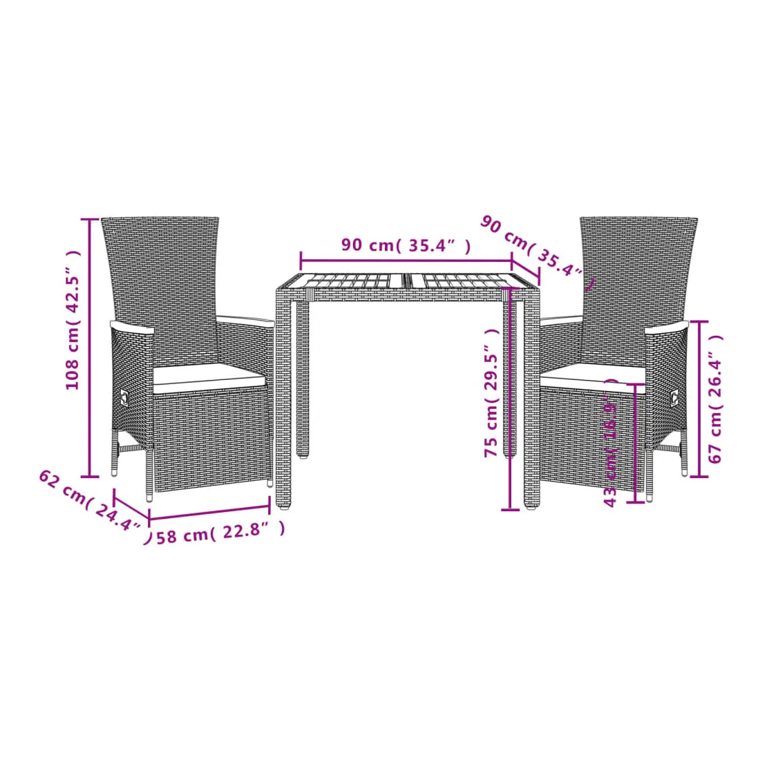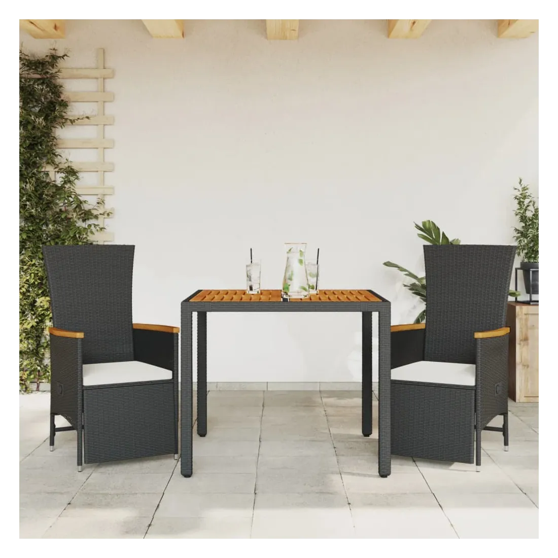 Cet ensemble de salle à manger de jardin est un excellent choix pour les repas en plein air ou pour vous détendre dans le jardin, dans l'arrière-cour ou sur la terrasse. Matériau durable : la résine tressée, également connue sous le nom de poly rotin, est un matériau synthétique solide et nécessitant peu d'entretien qui ressemble au rotin naturel. Il est léger, facile à nettoyer et couramment utilisé pour les meubles d'extérieur en raison de sa durabilité et de ses propriétés de résistance aux intempéries.Dossier et repose-pied réglables : ce siège de jardin est doté d'une poignée. Vous pouvez régler le dossier et le repose-pied dans n'importe quelle position en tirant sur la poignée, et les remettre rapidement dans leur position initiale.Expérience d'assise confortable : ce mobilier d'extérieur, doté de coussins épais, offre une expérience d'assise confortable.Housse amovible et lavable : ces coussins de siège sont dotés de housses amovibles pour un lavage et un entretien faciles.Dessus stable et facile à nettoyer : cette table de jardin a un dessus en bois d'acacia robuste, durable et facile à nettoyer avec un chiffon humide. Bon à savoir :Pour que vos meubles d'extérieur restent beaux, nous vous recommandons de les protéger avec une housse imperméable.