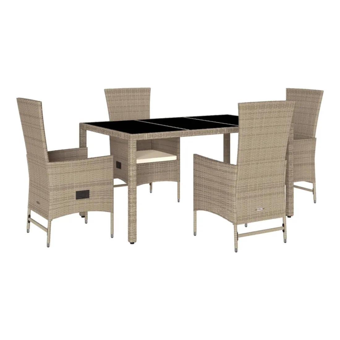 Cet ensemble de salle à manger de jardin est un excellent choix pour les repas en plein air ou pour vous détendre dans le jardin, dans l'arrière-cour ou sur la terrasse. Matériau durable : la résine tressée, également connue sous le nom de poly rotin, est un matériau synthétique solide et nécessitant peu d'entretien qui ressemble au rotin naturel. Il est léger, facile à nettoyer et couramment utilisé pour les meubles d'extérieur en raison de sa durabilité et de ses propriétés de résistance aux intempéries.Dossier réglable : ce siège de jardin est doté d'une poignée. Vous pouvez régler le dossier dans n'importe quelle position en tirant sur la poignée et le remettre rapidement dans sa position initiale.Expérience d'assise confortable : ce mobilier d'extérieur, doté de coussins épais, offre une expérience d'assise confortable.Housse amovible et lavable : ces coussins de siège sont dotés de housses amovibles pour un lavage et un entretien faciles.Dessus en verre : le dessus de la table d'extérieur est fabriqué en verre trempé solide et durable, ce qui le rend facile à nettoyer avec un chiffon humide et ajoute une touche d'élégance à votre espace extérieur. Bon à savoir :Pour que vos meubles d'extérieur restent beaux, nous vous recommandons de les protéger avec une housse imperméable.