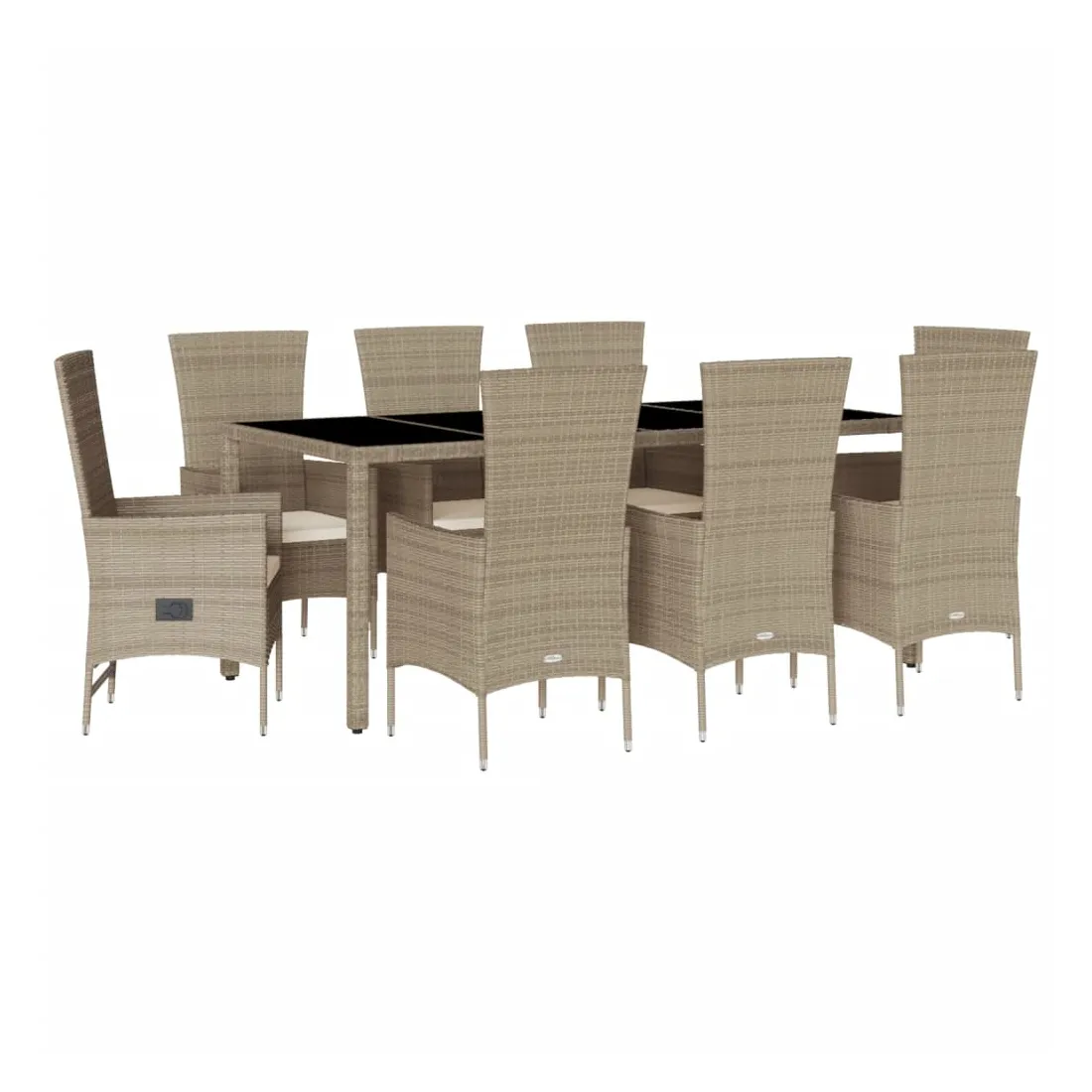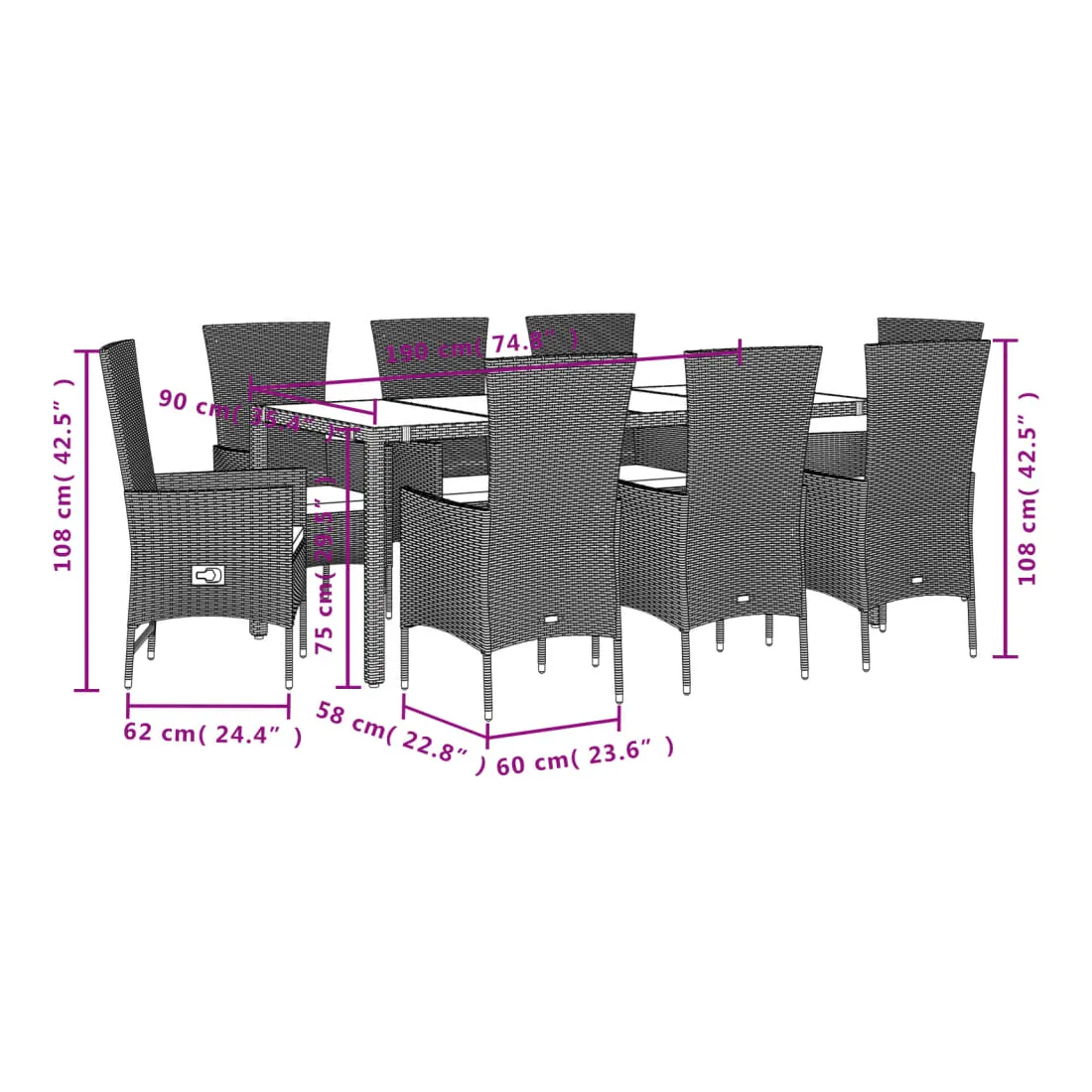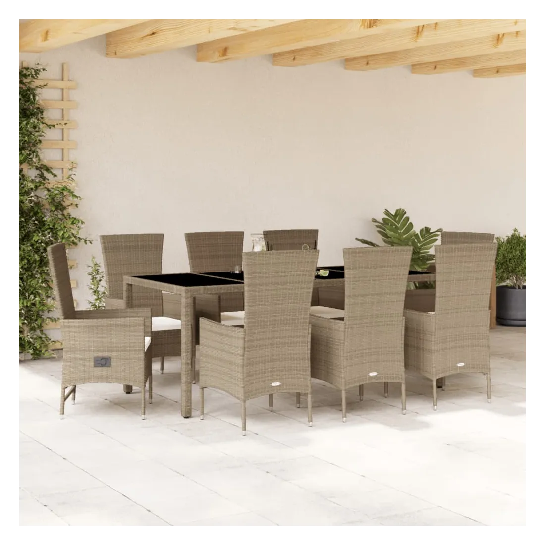 Cet ensemble de salle à manger de jardin est un excellent choix pour les repas en plein air ou pour vous détendre dans le jardin, dans l'arrière-cour ou sur la terrasse. Matériau durable : la résine tressée, également connue sous le nom de poly rotin, est un matériau synthétique solide et nécessitant peu d'entretien qui ressemble au rotin naturel. Il est léger, facile à nettoyer et couramment utilisé pour les meubles d'extérieur en raison de sa durabilité et de ses propriétés de résistance aux intempéries.Dossier réglable : ce siège de jardin est doté d'une poignée. Vous pouvez régler le dossier dans n'importe quelle position en tirant sur la poignée et le remettre rapidement dans sa position initiale.Expérience d'assise confortable : ce mobilier d'extérieur, doté de coussins épais, offre une expérience d'assise confortable.Housse amovible et lavable : ces coussins de siège sont dotés de housses amovibles pour un lavage et un entretien faciles.Dessus en verre : le dessus de la table d'extérieur est fabriqué en verre trempé solide et durable, ce qui le rend facile à nettoyer avec un chiffon humide et ajoute une touche d'élégance à votre espace extérieur. Bon à savoir :Pour que vos meubles d'extérieur restent beaux, nous vous recommandons de les protéger avec une housse imperméable.