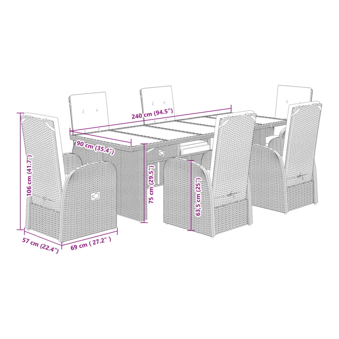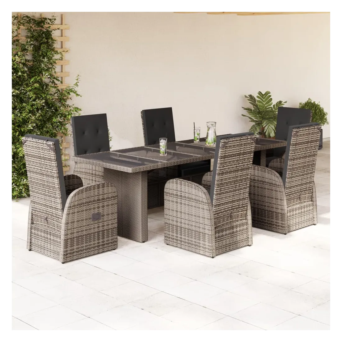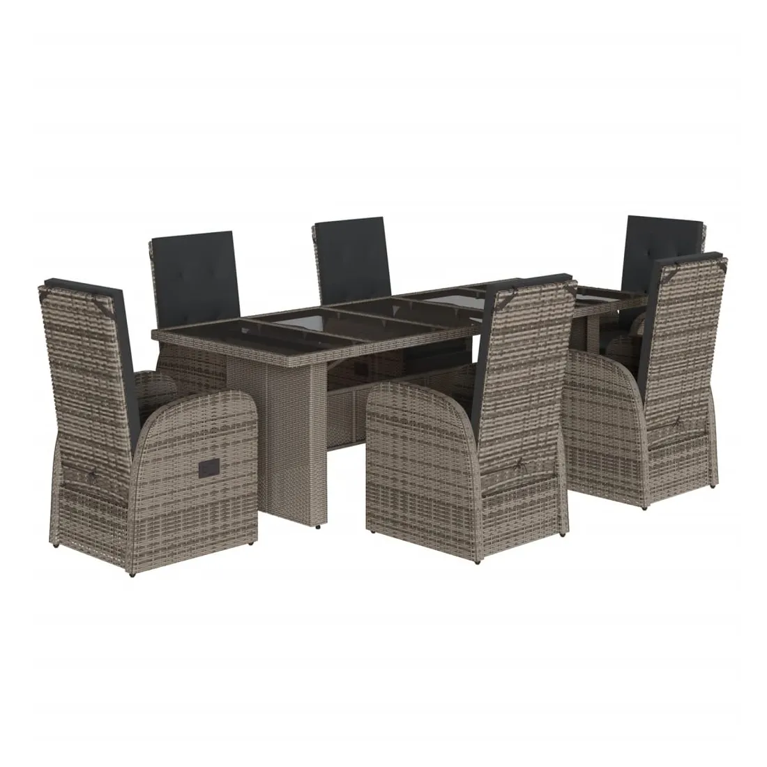 Cet ensemble de salle à manger de jardin est un excellent choix pour les repas en plein air ou pour vous détendre dans le jardin, dans l'arrière-cour ou sur la terrasse. Matériau durable : la résine tressée, également connue sous le nom de poly rotin, est un matériau synthétique solide et nécessitant peu d'entretien qui ressemble au rotin naturel. Il est léger, facile à nettoyer et couramment utilisé pour les meubles d'extérieur en raison de sa durabilité et de ses propriétés de résistance aux intempéries.Dossier et repose-pied réglables : ce siège de jardin est doté d'une poignée. Vous pouvez régler le dossier et le repose-pied dans n'importe quelle position en tirant sur la poignée, et le remettre rapidement dans sa position initiale.Expérience d'assise confortable : ce mobilier d'extérieur, doté de coussins épais, offre une expérience d'assise confortable.Housse amovible et lavable : ces coussins de siège sont dotés de housses amovibles pour un lavage et un entretien faciles.Dessus en verre : le dessus de la table d'extérieur est fabriqué en verre trempé solide et durable, ce qui le rend facile à nettoyer avec un chiffon humide et ajoute une touche d'élégance à votre espace extérieur. Bon à savoir :Pour que vos meubles d'extérieur restent beaux, nous vous recommandons de les protéger avec une housse imperméable.