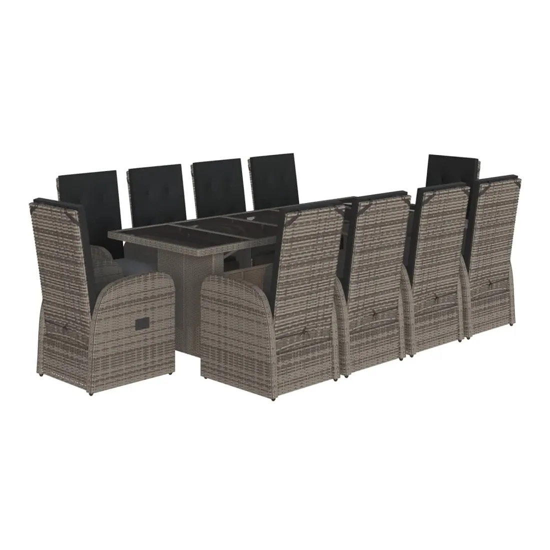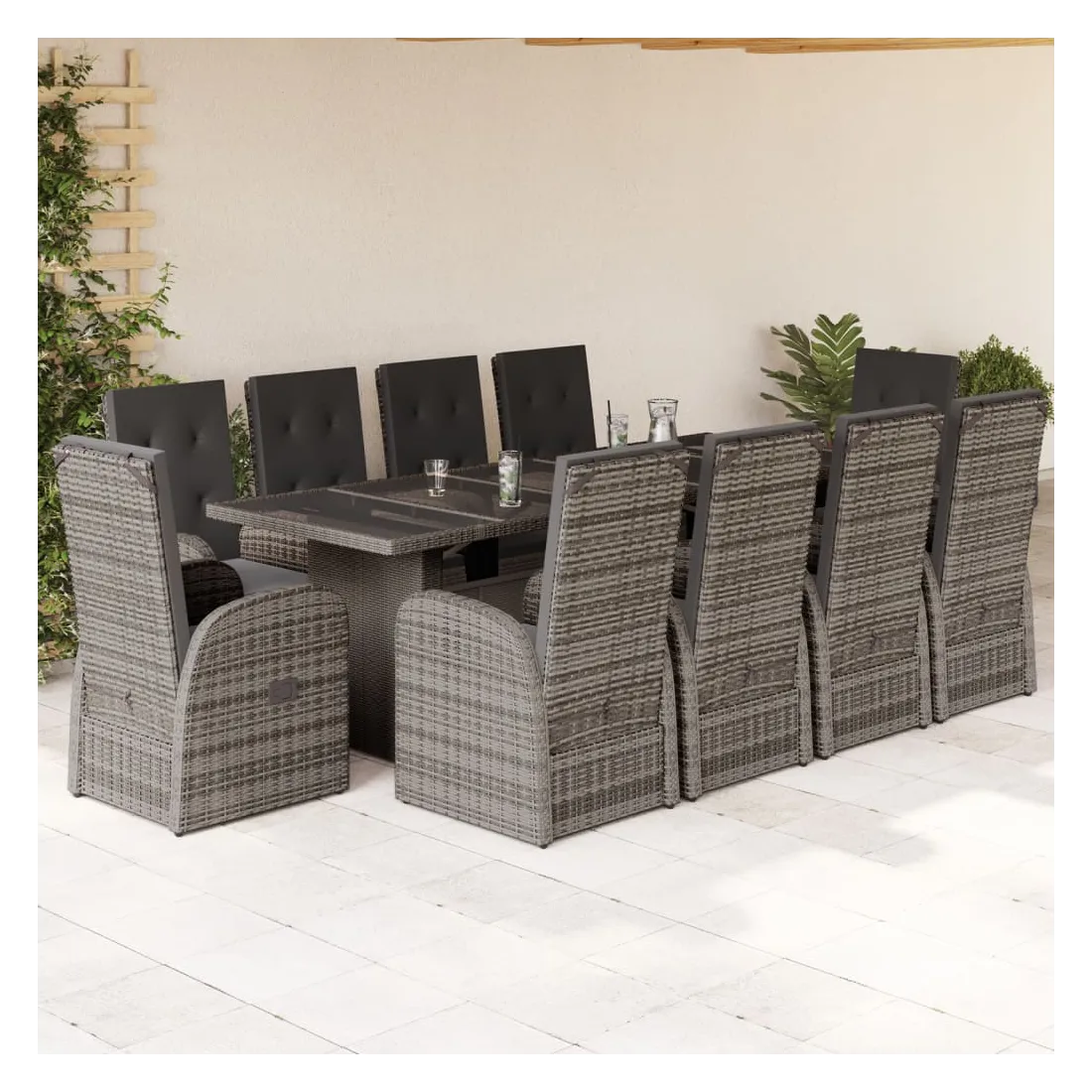 Cet ensemble de salle à manger de jardin est un excellent choix pour les repas en plein air ou pour vous détendre dans le jardin, dans l'arrière-cour ou sur la terrasse. Matériau durable : la résine tressée, également connue sous le nom de poly rotin, est un matériau synthétique solide et nécessitant peu d'entretien qui ressemble au rotin naturel. Il est léger, facile à nettoyer et couramment utilisé pour les meubles d'extérieur en raison de sa durabilité et de ses propriétés de résistance aux intempéries.Dossier et repose-pied réglables : ce siège de jardin est doté d'une poignée. Vous pouvez régler le dossier et le repose-pied dans n'importe quelle position en tirant sur la poignée, et le remettre rapidement dans sa position initiale.Expérience d'assise confortable : ce mobilier d'extérieur, doté de coussins épais, offre une expérience d'assise confortable.Housse amovible et lavable : ces coussins de siège sont dotés de housses amovibles pour un lavage et un entretien faciles.Dessus en verre : le dessus de la table d'extérieur est fabriqué en verre trempé solide et durable, ce qui le rend facile à nettoyer avec un chiffon humide et ajoute une touche d'élégance à votre espace extérieur. Bon à savoir :Pour que vos meubles d'extérieur restent beaux, nous vous recommandons de les protéger avec une housse imperméable.