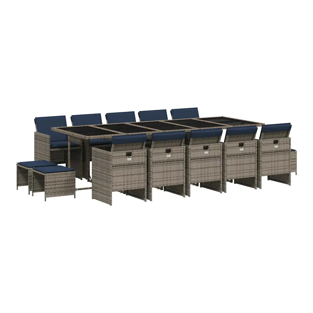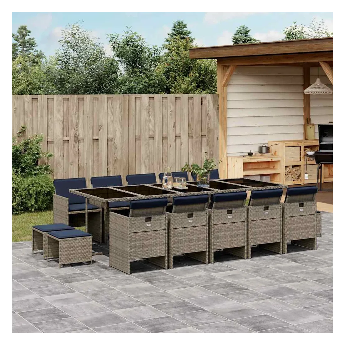 Cet ensemble de salle à manger de jardin est un excellent choix pour les repas en plein air ou pour vous détendre dans le jardin, dans l'arrière-cour ou sur la terrasse. Matériau durable : la résine tressée, également connue sous le nom de poly rotin, est un matériau synthétique solide et nécessitant peu d'entretien qui ressemble au rotin naturel. Elle est légère, facile à nettoyer et couramment utilisée pour les meubles d'extérieur en raison de sa durabilité et de ses propriétés de résistance aux intempéries.Rangement compact : ces chaises sont dotées d'un dossier rabattable, ce qui permet de les ranger facilement sous la table. Une fois pliées, elles se rangent parfaitement sous la table, formant un cube peu encombrant. De plus, les tabourets peuvent également être rangés sous les chaises, maximisant encore davantage l'efficacité de l'espace. Expérience d'assise confortable : ce mobilier d'extérieur, doté de coussins épais, offre une expérience d'assise confortable.Housse amovible et lavable : ces coussins de siège sont dotés de housses amovibles pour un lavage et un entretien faciles.Dessus en verre : le dessus de la table d'extérieur est fabriqué en verre trempé solide et durable, ce qui le rend facile à nettoyer avec un chiffon humide et ajoute une touche d'élégance à votre espace extérieur. Bon à savoir : Pour que vos meubles d'extérieur restent beaux, nous vous recommandons de les protéger avec une housse imperméable.