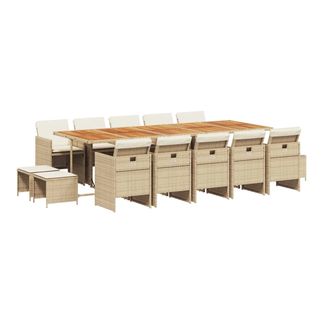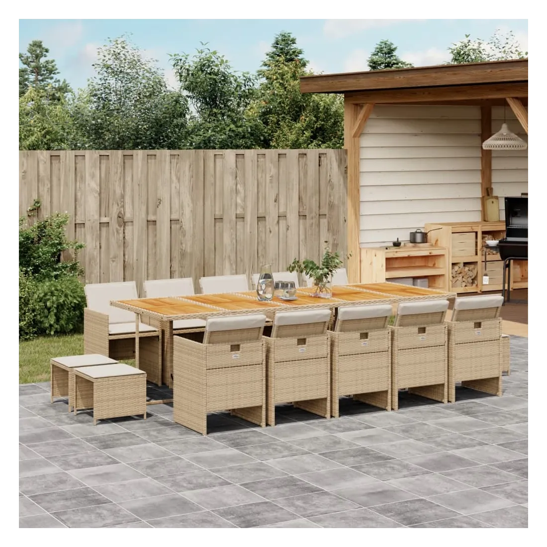 Cet ensemble de salle à manger de jardin est un excellent choix pour les repas en plein air ou pour vous détendre dans le jardin, dans l'arrière-cour ou sur la terrasse. Matériau durable : la résine tressée, également connue sous le nom de poly rotin, est un matériau synthétique solide et nécessitant peu d'entretien qui ressemble au rotin naturel. Il est léger, facile à nettoyer et couramment utilisé pour les meubles d'extérieur en raison de sa durabilité et de ses propriétés de résistance aux intempéries.Rangement compact : ces chaises sont dotées d'un dossier rabattable, ce qui permet de les ranger facilement sous la table. Une fois pliées, elles se rangent parfaitement sous la table, formant un cube peu encombrant. De plus, les tabourets peuvent également être rangés sous les chaises, maximisant encore davantage l'efficacité de l'espace. Expérience d'assise confortable : ce mobilier d'extérieur, doté de coussins épais, offre une expérience d'assise confortable.Housse amovible et lavable : ces coussins de siège sont dotés de housses amovibles pour un lavage et un entretien faciles.Dessus stable et facile à nettoyer : cette table de jardin a un dessus en bois d'acacia robuste, durable et facile à nettoyer avec un chiffon humide. Bon à savoir : Pour que vos meubles d'extérieur restent beaux, nous vous recommandons de les protéger avec une housse imperméable.
