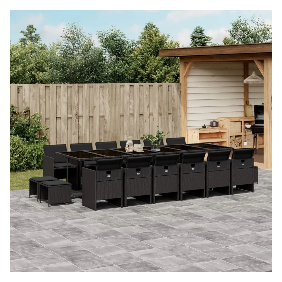 Cet ensemble de salle à manger de jardin est un excellent choix pour les repas en plein air ou pour vous détendre dans le jardin, dans l'arrière-cour ou sur la terrasse. Matériau durable : la résine tressée, également connue sous le nom de poly rotin, est un matériau synthétique solide et nécessitant peu d'entretien qui ressemble au rotin naturel. Il est léger, facile à nettoyer et couramment utilisé pour les meubles d'extérieur en raison de sa durabilité et de ses propriétés de résistance aux intempéries.Rangement compact : ces chaises sont dotées d'un dossier rabattable, ce qui permet de les ranger facilement sous la table. Une fois pliées, elles se rangent parfaitement sous la table, formant un cube peu encombrant. De plus, les tabourets peuvent également être rangés sous les chaises, maximisant encore davantage l'efficacité de l'espace. Expérience d'assise confortable : ce mobilier d'extérieur, doté de coussins épais, offre une expérience d'assise confortable.Housse amovible et lavable : ces coussins de siège sont dotés de housses amovibles pour un lavage et un entretien faciles.Dessus en verre : le dessus de la table d'extérieur est fabriqué en verre trempé solide et durable, ce qui le rend facile à nettoyer avec un chiffon humide et ajoute une touche d'élégance à votre espace extérieur. Bon à savoir : Pour que vos meubles d'extérieur restent beaux, nous vous recommandons de les protéger avec une housse imperméable.