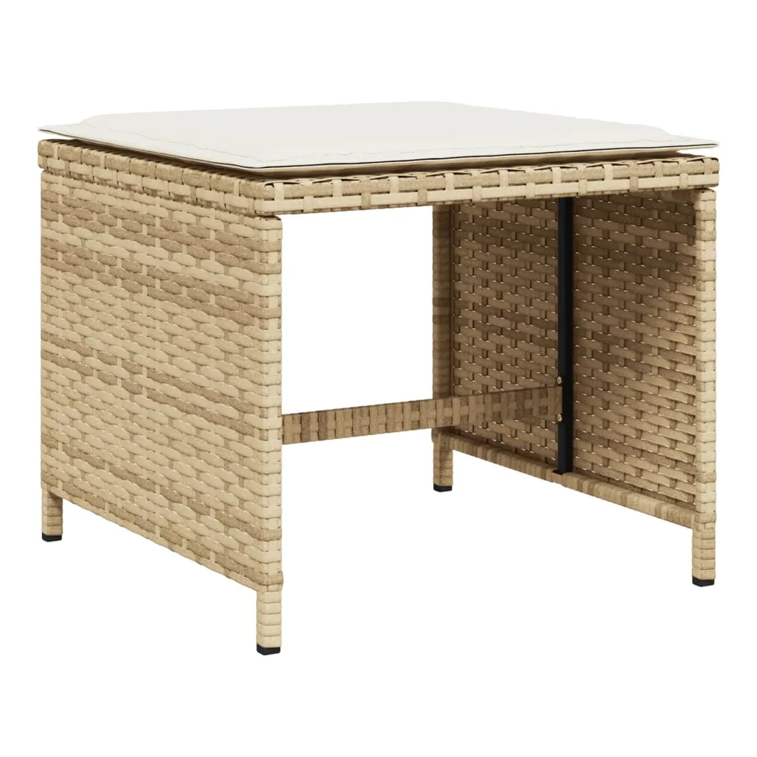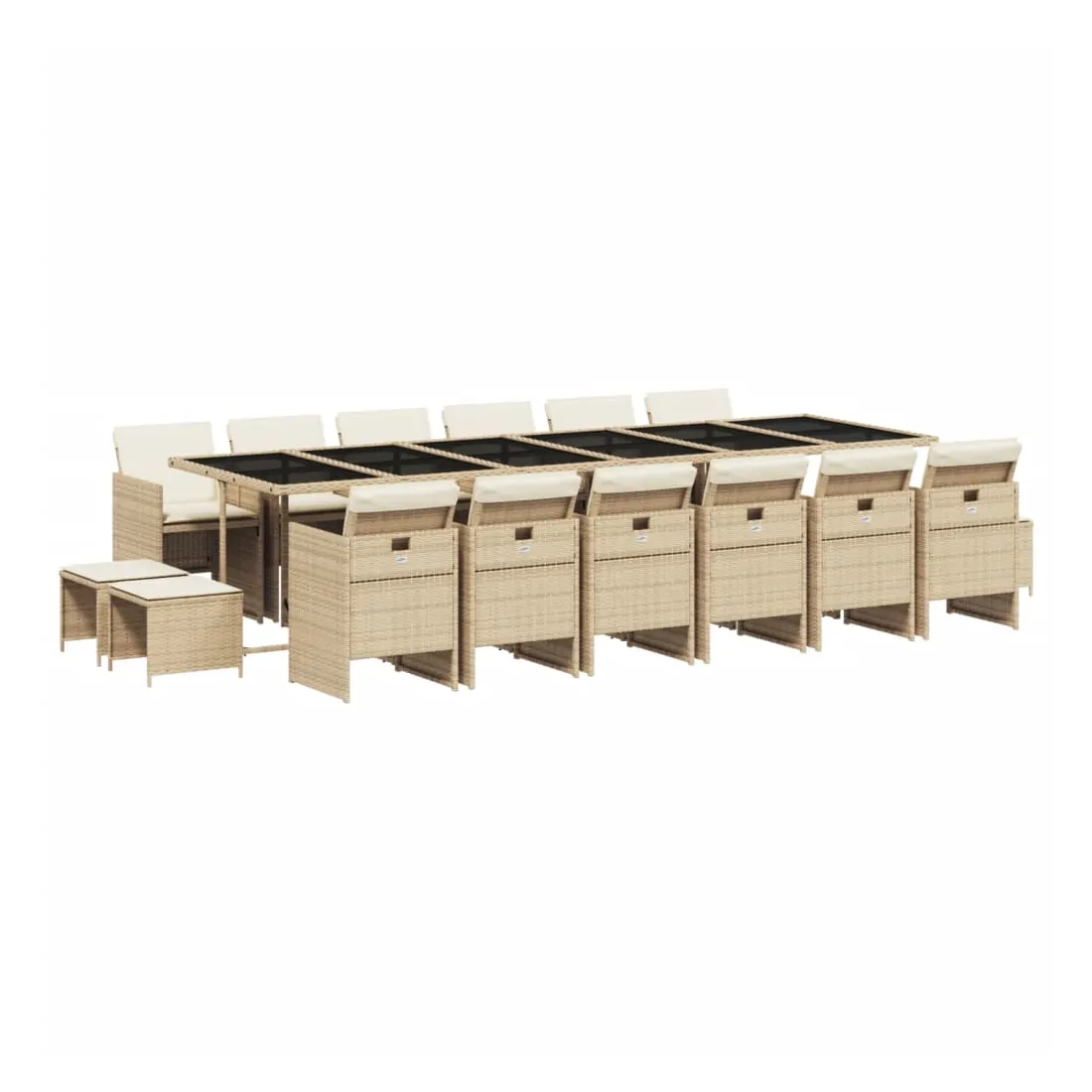 Cet ensemble de salle à manger de jardin est un excellent choix pour les repas en plein air ou pour vous détendre dans le jardin, dans l'arrière-cour ou sur la terrasse. Matériau durable : la résine tressée, également connue sous le nom de poly rotin, est un matériau synthétique solide et nécessitant peu d'entretien qui ressemble au rotin naturel. Il est léger, facile à nettoyer et couramment utilisé pour les meubles d'extérieur en raison de sa durabilité et de ses propriétés de résistance aux intempéries.Rangement compact : ces chaises sont dotées d'un dossier rabattable, ce qui permet de les ranger facilement sous la table. Une fois pliées, elles se rangent parfaitement sous la table, formant un cube peu encombrant. De plus, les tabourets peuvent également être rangés sous les chaises, maximisant encore davantage l'efficacité de l'espace. Expérience d'assise confortable : ce mobilier d'extérieur, doté de coussins épais, offre une expérience d'assise confortable.Housse amovible et lavable : ces coussins de siège sont dotés de housses amovibles pour un lavage et un entretien faciles.Dessus en verre : le dessus de la table d'extérieur est fabriqué en verre trempé solide et durable, ce qui le rend facile à nettoyer avec un chiffon humide et ajoute une touche d'élégance à votre espace extérieur. Bon à savoir : Pour que vos meubles d'extérieur restent beaux, nous vous recommandons de les protéger avec une housse imperméable.