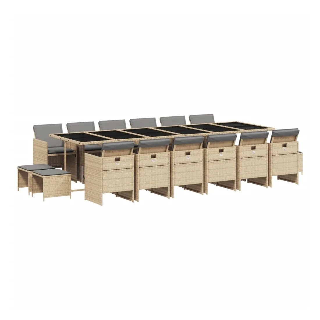 Cet ensemble de salle à manger de jardin est un excellent choix pour les repas en plein air ou pour vous détendre dans le jardin, dans l'arrière-cour ou sur la terrasse. Matériau durable : la résine tressée, également connue sous le nom de poly rotin, est un matériau synthétique solide et nécessitant peu d'entretien qui ressemble au rotin naturel. Il est léger, facile à nettoyer et couramment utilisé pour les meubles d'extérieur en raison de sa durabilité et de ses propriétés de résistance aux intempéries.Rangement compact : ces chaises sont dotées d'un dossier rabattable, ce qui permet de les ranger facilement sous la table. Une fois pliées, elles se rangent parfaitement sous la table, formant un cube peu encombrant. De plus, les tabourets peuvent également être rangés sous les chaises, maximisant encore davantage l'efficacité de l'espace. Expérience d'assise confortable : ce mobilier d'extérieur, doté de coussins épais, offre une expérience d'assise confortable.Housse amovible et lavable : ces coussins de siège sont dotés de housses amovibles pour un lavage et un entretien faciles.Dessus en verre : le dessus de la table d'extérieur est fabriqué en verre trempé solide et durable, ce qui le rend facile à nettoyer avec un chiffon humide et ajoute une touche d'élégance à votre espace extérieur. Bon à savoir : Pour que vos meubles d'extérieur restent beaux, nous vous recommandons de les protéger avec une housse imperméable.
