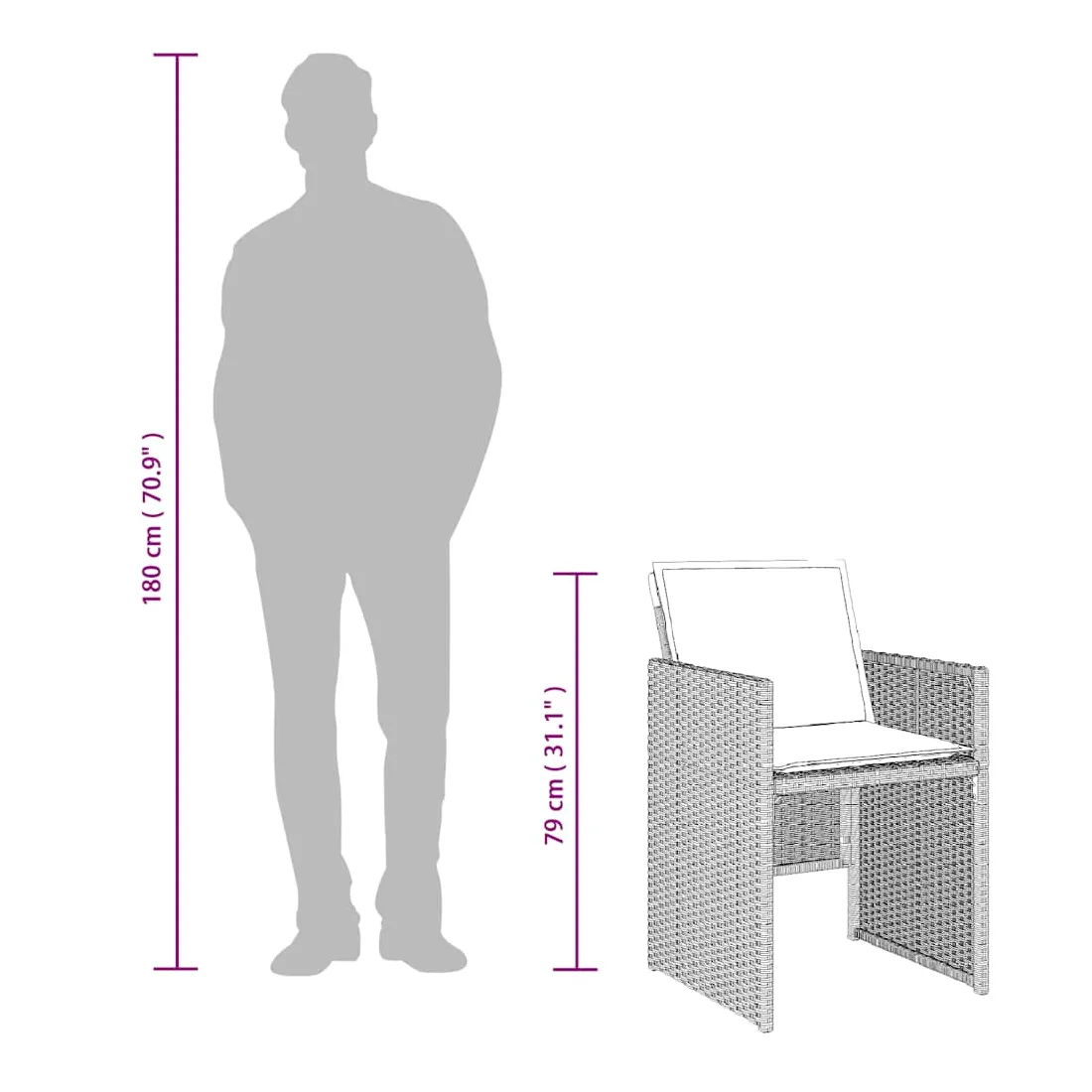 Cet ensemble de salle à manger de jardin est un excellent choix pour les repas en plein air ou pour vous détendre dans le jardin, dans l'arrière-cour ou sur la terrasse. Matériau durable : la résine tressée, également connue sous le nom de poly rotin, est un matériau synthétique solide et nécessitant peu d'entretien qui ressemble au rotin naturel. Il est léger, facile à nettoyer et couramment utilisé pour les meubles d'extérieur en raison de sa durabilité et de ses propriétés de résistance aux intempéries.Rangement compact : ces chaises sont dotées d'un dossier rabattable, ce qui permet de les ranger facilement sous la table. Une fois pliées, elles se rangent parfaitement sous la table, formant un cube peu encombrant. Expérience d'assise confortable : ce mobilier d'extérieur, doté de coussins épais, offre une expérience d'assise confortable.Housse amovible et lavable : ces coussins de siège sont dotés de housses amovibles pour un lavage et un entretien faciles.Dessus en verre : le dessus de la table d'extérieur est fabriqué en verre trempé solide et durable, ce qui le rend facile à nettoyer avec un chiffon humide et ajoute une touche d'élégance à votre espace extérieur. Bon à savoir : Pour que vos meubles d'extérieur restent beaux, nous vous recommandons de les protéger avec une housse imperméable.