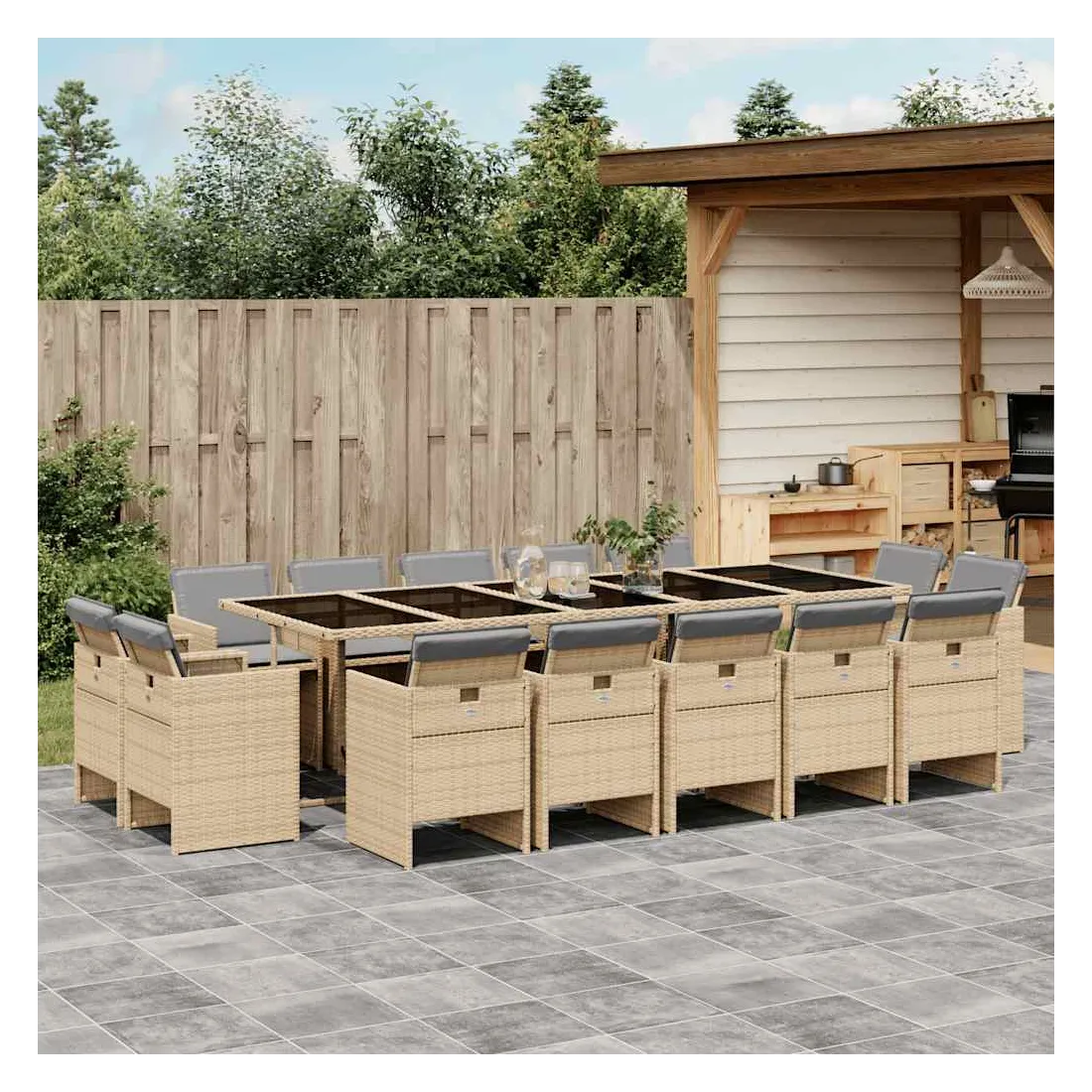 Cet ensemble de salle à manger de jardin est un excellent choix pour les repas en plein air ou pour vous détendre dans le jardin, dans l'arrière-cour ou sur la terrasse. Matériau durable : la résine tressée, également connue sous le nom de poly rotin, est un matériau synthétique solide et nécessitant peu d'entretien qui ressemble au rotin naturel. Il est léger, facile à nettoyer et couramment utilisé pour les meubles d'extérieur en raison de sa durabilité et de ses propriétés de résistance aux intempéries.Rangement compact : ces chaises sont dotées d'un dossier rabattable, ce qui permet de les ranger facilement sous la table. Une fois pliées, elles se rangent parfaitement sous la table, formant un cube peu encombrant. Expérience d'assise confortable : ce mobilier d'extérieur, doté de coussins épais, offre une expérience d'assise confortable.Housse amovible et lavable : ces coussins de siège sont dotés de housses amovibles pour un lavage et un entretien faciles.Dessus en verre : le dessus de la table d'extérieur est fabriqué en verre trempé solide et durable, ce qui le rend facile à nettoyer avec un chiffon humide et ajoute une touche d'élégance à votre espace extérieur. Bon à savoir : Pour que vos meubles d'extérieur restent beaux, nous vous recommandons de les protéger avec une housse imperméable.
