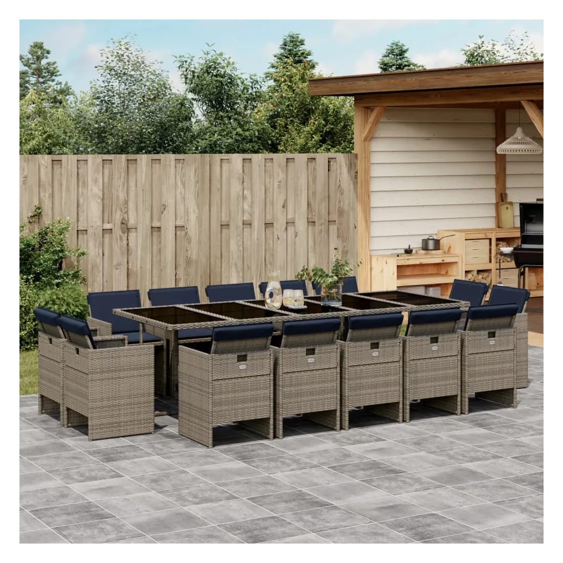 Ensemble à manger de jardin avec coussins 15 pcs résine tressée