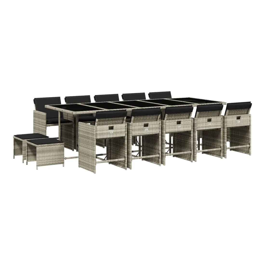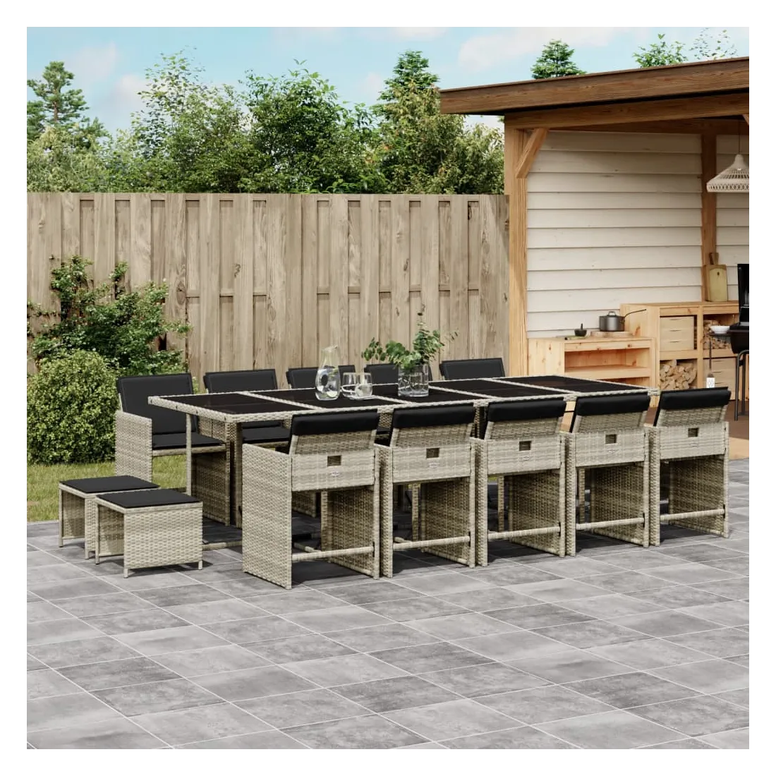 Cet ensemble de salle à manger de jardin est un excellent choix pour les repas en plein air ou pour vous détendre dans le jardin, dans l'arrière-cour ou sur la terrasse. Matériau durable : la résine tressée, également connue sous le nom de poly rotin, est un matériau synthétique solide et nécessitant peu d'entretien qui ressemble au rotin naturel. Il est léger, facile à nettoyer et couramment utilisé pour les meubles d'extérieur en raison de sa durabilité et de ses propriétés de résistance aux intempéries.Rangement compact : ces chaises sont dotées d'un dossier rabattable, ce qui permet de les ranger facilement sous la table. Une fois pliées, elles se rangent parfaitement sous la table, formant un cube peu encombrant. De plus, les tabourets peuvent également être rangés sous les chaises, maximisant encore davantage l'efficacité de l'espace.Expérience d'assise confortable : ce mobilier d'extérieur, doté de coussins épais, offre une expérience d'assise confortable.Housse amovible et lavable : ces coussins de siège sont dotés de housses amovibles pour un lavage et un entretien faciles. Les housses de coussin de chaise ont un rabat à l'arrière pour une fixation facile aux chaises.Dessus stable et facile à nettoyer : cette table de jardin est dotée d'un dessus en verre trempé robuste, durable et facile à nettoyer à l'aide d'un chiffon humide. Bon à savoir : Pour que vos meubles d'extérieur restent beaux, nous vous recommandons de les protéger avec une housse imperméable.