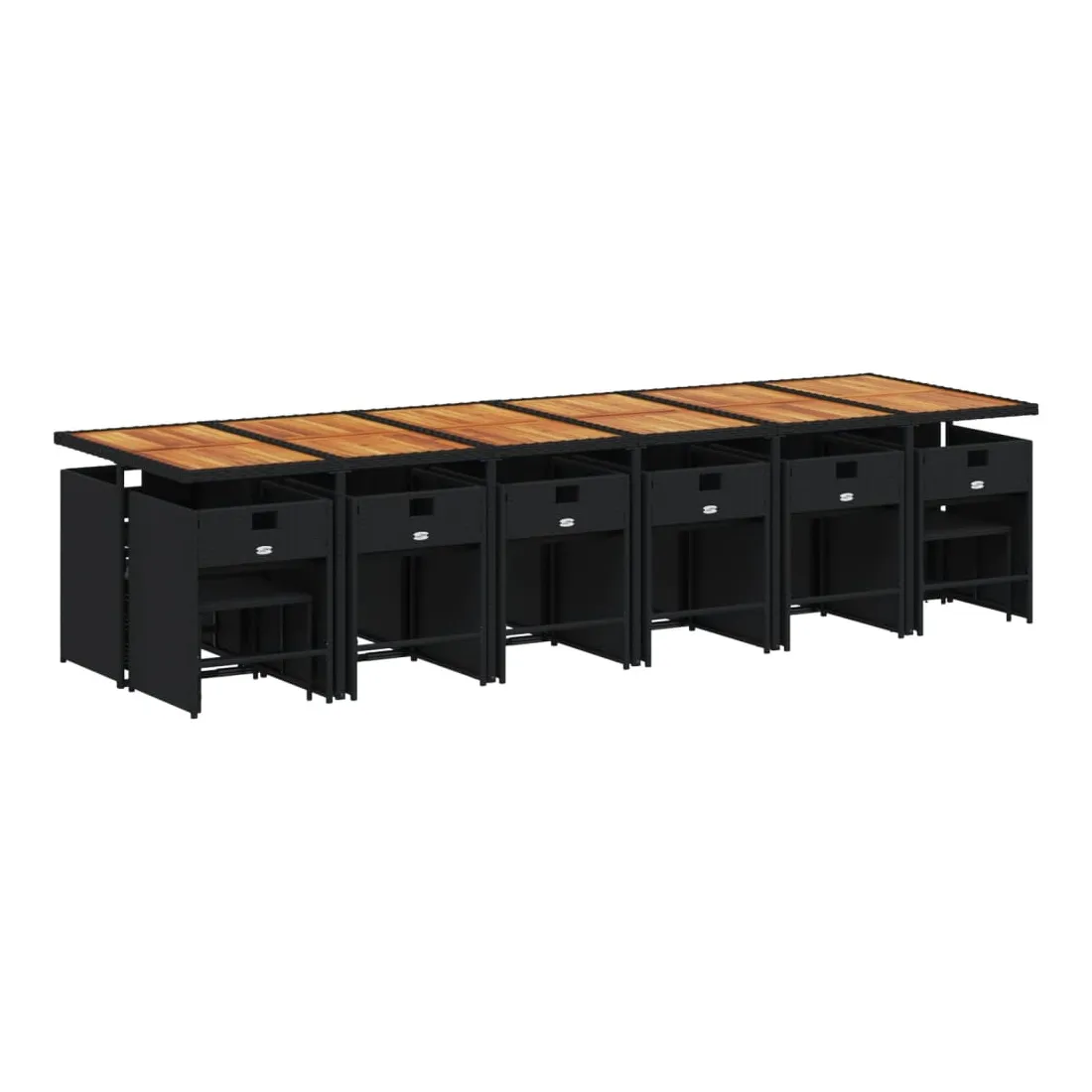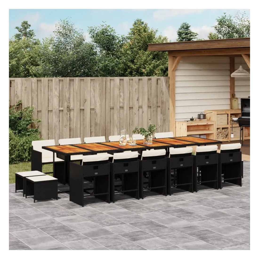 Cet ensemble de salle à manger de jardin est un excellent choix pour les repas en plein air ou pour vous détendre dans le jardin, dans l'arrière-cour ou sur la terrasse. Matériau durable : la résine tressée, également connue sous le nom de poly rotin, est un matériau synthétique solide et nécessitant peu d'entretien qui ressemble au rotin naturel. Il est léger, facile à nettoyer et couramment utilisé pour les meubles d'extérieur en raison de sa durabilité et de ses propriétés de résistance aux intempéries.Rangement compact : ces chaises sont dotées d'un dossier rabattable, ce qui permet de les ranger facilement sous la table. Une fois pliées, elles se rangent parfaitement sous la table, formant un cube peu encombrant. De plus, les tabourets peuvent également être rangés sous les chaises, maximisant encore davantage l'efficacité de l'espace.Expérience d'assise confortable : ce mobilier d'extérieur, doté de coussins épais, offre une expérience d'assise confortable.Housse amovible et lavable : ces coussins de siège sont dotés de housses amovibles pour un lavage et un entretien faciles. Les housses de coussin de chaise ont un rabat à l'arrière pour une fixation facile aux chaises.Dessus stable et facile à nettoyer : cette table de jardin a un dessus en bois d'acacia robuste, durable et facile à nettoyer avec un chiffon humide. Bon à savoir : Pour que vos meubles d'extérieur restent beaux, nous vous recommandons de les protéger avec une housse imperméable.