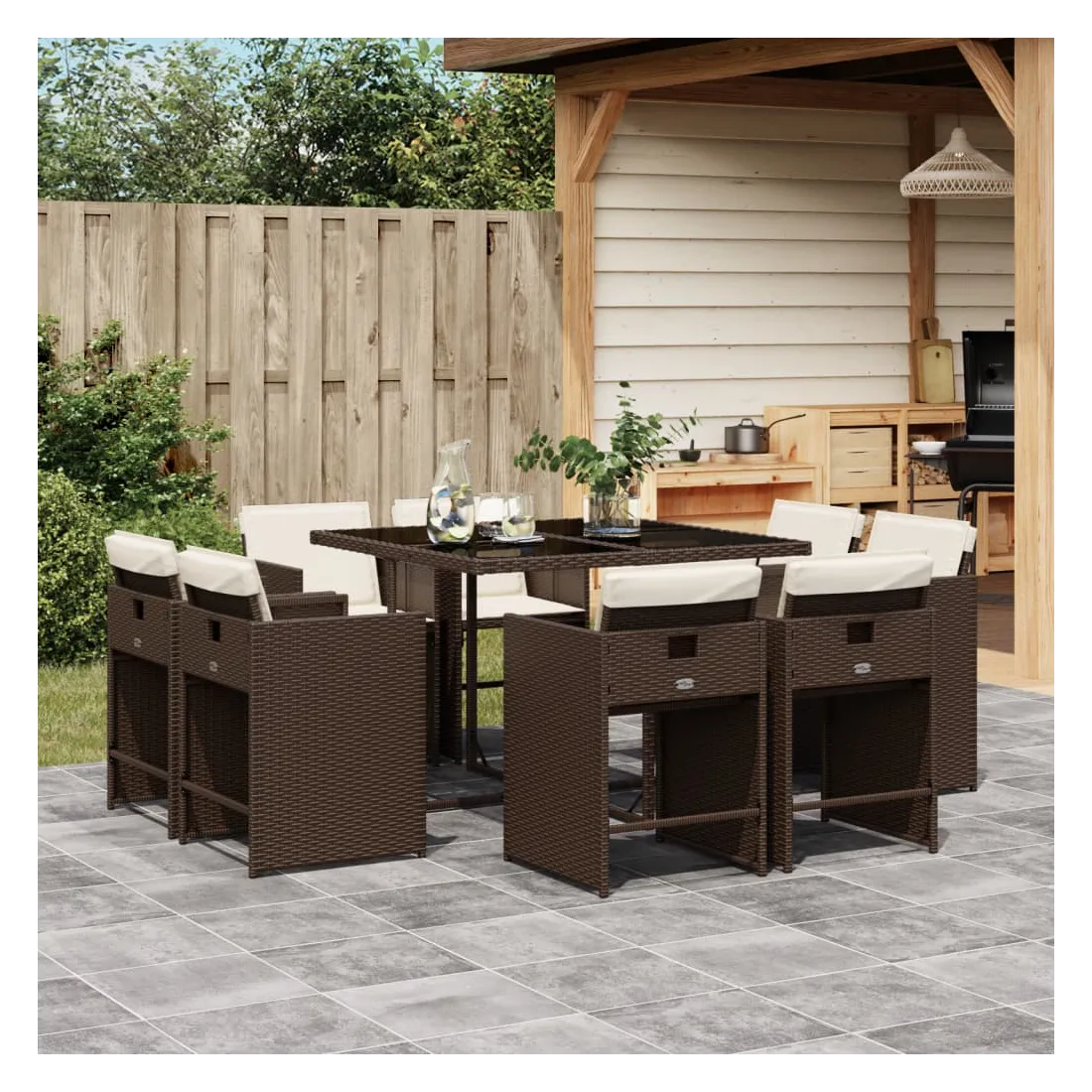 Cet ensemble de salle à manger de jardin est un excellent choix pour les repas en plein air ou pour vous détendre dans le jardin, dans l'arrière-cour ou sur la terrasse. Matériau durable : la résine tressée, également connue sous le nom de poly rotin, est un matériau synthétique solide et nécessitant peu d'entretien qui ressemble au rotin naturel. Il est léger, facile à nettoyer et couramment utilisé pour les meubles d'extérieur en raison de sa durabilité et de ses propriétés de résistance aux intempéries.Rangement compact : ces chaises sont dotées d'un dossier rabattable, ce qui permet de les ranger facilement sous la table. Une fois pliées, elles se rangent parfaitement sous la table, formant un cube peu encombrant.Expérience d'assise confortable : ce mobilier d'extérieur, doté de coussins épais, offre une expérience d'assise confortable.Housse amovible et lavable : ces coussins de siège sont dotés de housses amovibles pour un lavage et un entretien faciles. Les housses de coussin de chaise ont un rabat à l'arrière pour une fixation facile aux chaises.Dessus stable et facile à nettoyer : cette table de jardin est dotée d'un dessus en verre trempé robuste, durable et facile à nettoyer à l'aide d'un chiffon humide. Bon à savoir : Pour que vos meubles d'extérieur restent beaux, nous vous recommandons de les protéger avec une housse imperméable.