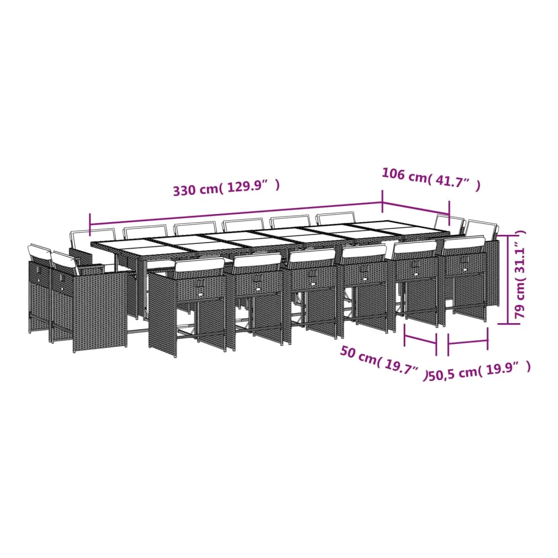 - Dimensions : 330 x 106 x 73 cm (L x l x H)
