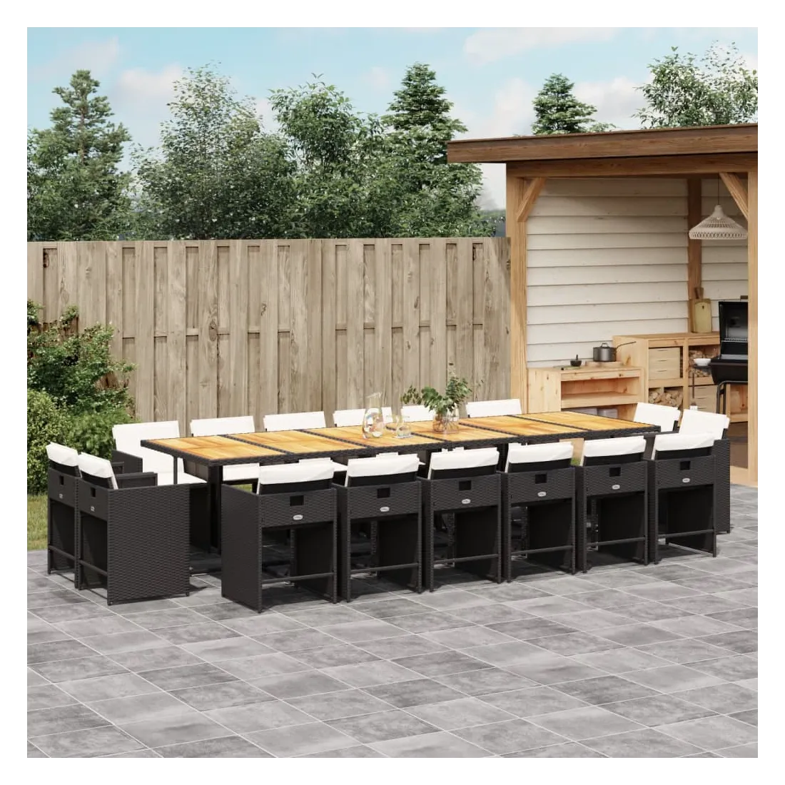 - Matériau : résine tressée, acier enduit de poudre, bois d'acacia massif