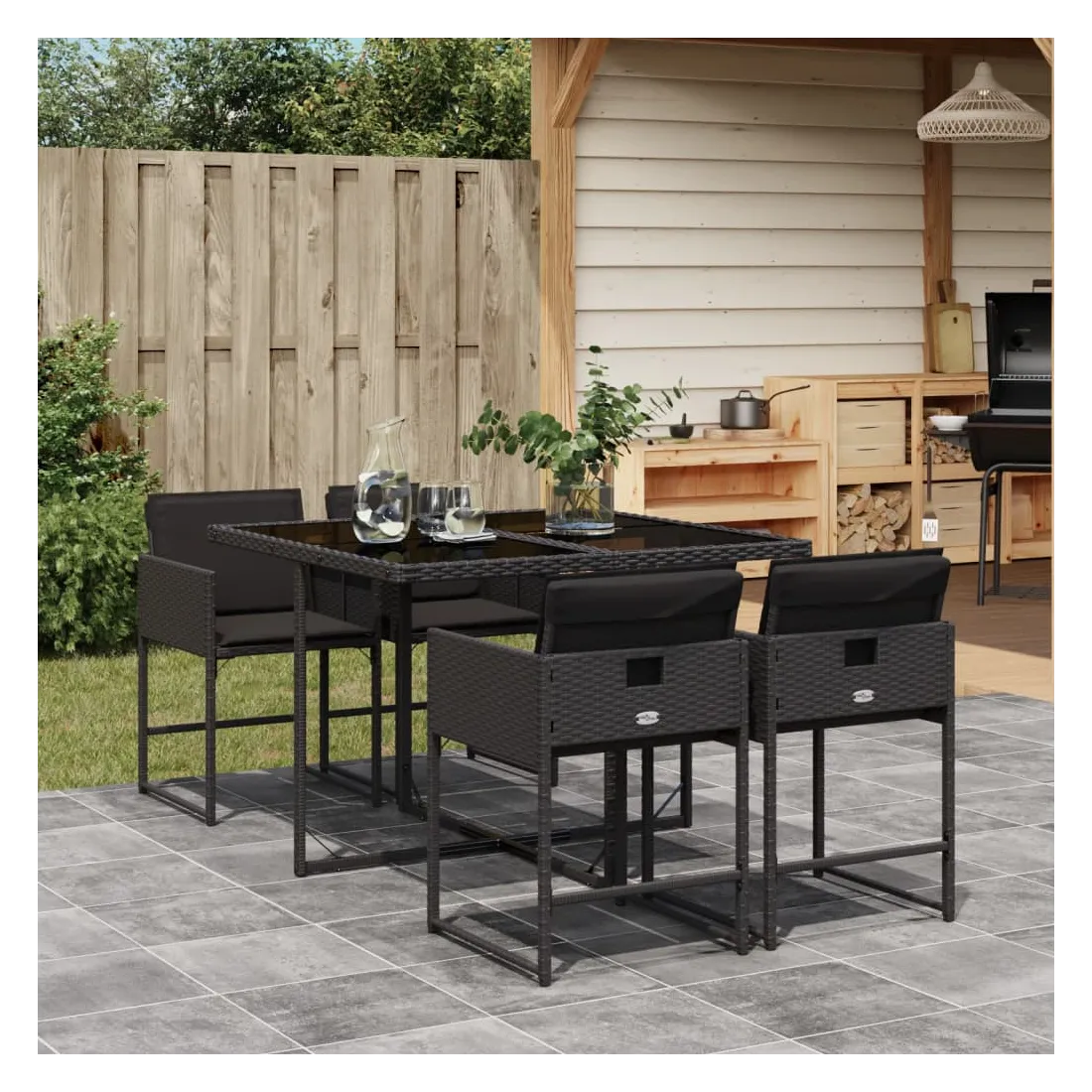 Cet ensemble de salle à manger de jardin est un excellent choix pour les repas en plein air ou pour vous détendre dans le jardin, dans l'arrière-cour ou sur la terrasse. Matériau durable : la résine tressée, également connue sous le nom de poly rotin, est un matériau synthétique solide et nécessitant peu d'entretien qui ressemble au rotin naturel. Il est léger, facile à nettoyer et couramment utilisé pour les meubles d'extérieur en raison de sa durabilité et de ses propriétés de résistance aux intempéries.Rangement compact : ces chaises sont dotées d'un dossier rabattable, ce qui permet de les ranger facilement sous la table. Une fois pliées, elles se rangent parfaitement sous la table, formant un cube peu encombrant.Expérience d'assise confortable : ce mobilier d'extérieur, doté de coussins épais, offre une expérience d'assise confortable.Housse amovible et lavable : ces coussins de siège sont dotés de housses amovibles pour un lavage et un entretien faciles. Les housses de coussin ont un rabat à l'arrière pour une fixation facile aux dossiers.Dessus en verre : le dessus de la table d'extérieur est fabriqué en verre trempé solide et durable, ce qui le rend facile à nettoyer avec un chiffon humide et ajoute une touche d'élégance à votre espace extérieur. Bon à savoir :Pour que vos meubles d'extérieur restent beaux, nous vous recommandons de les protéger avec une housse imperméable.